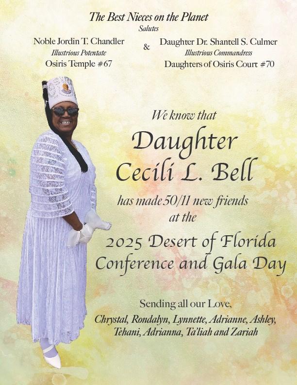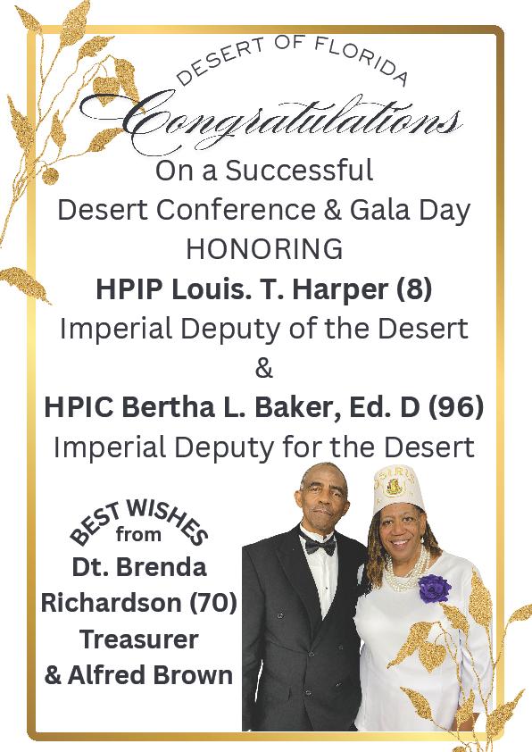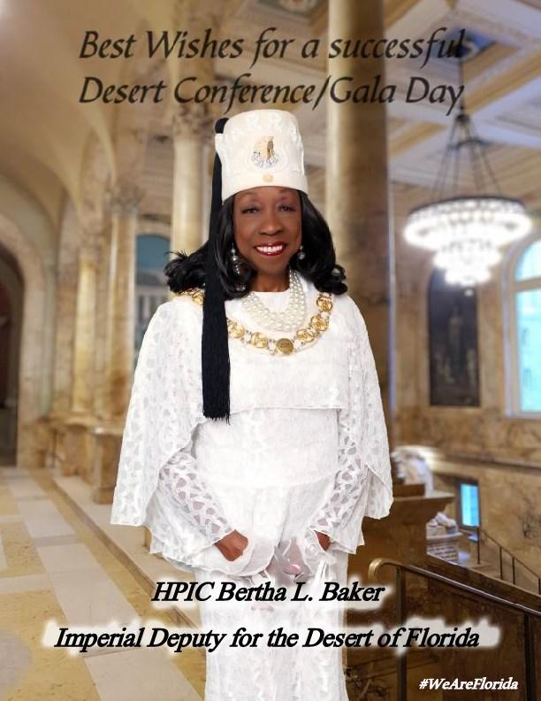 Yours in the faith, HPIC Dr. Bertha L. Baker (96) Imperial Deputy for the Desert of Florida