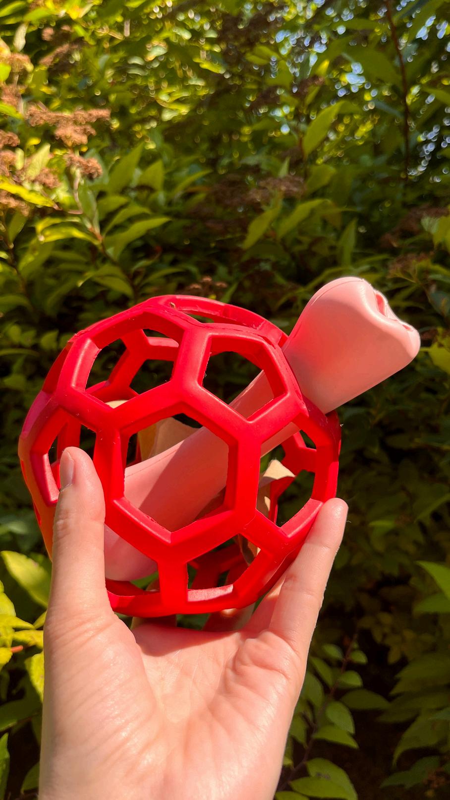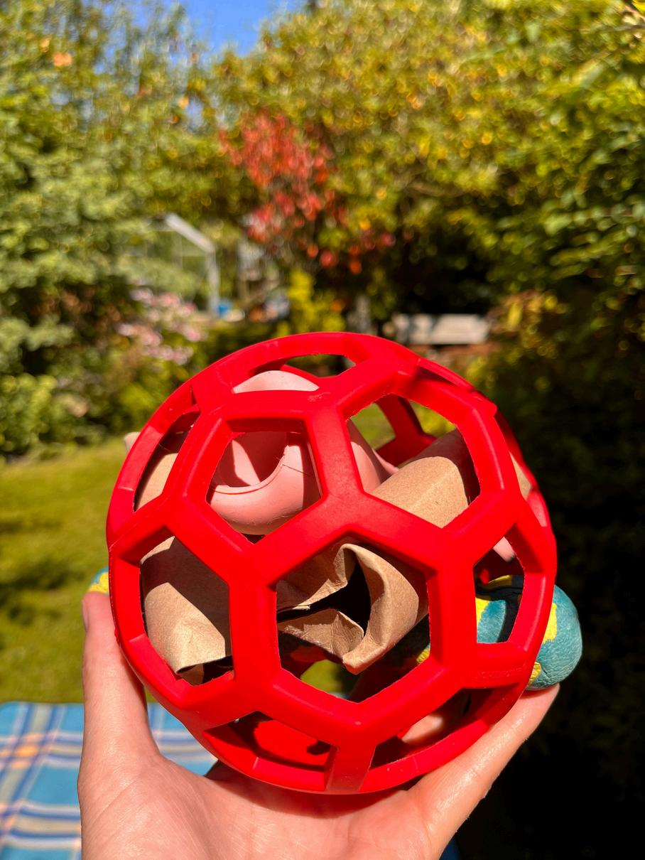 This neat little ball is so versatile, which is why we love it so much! The Hot-ee roller can be played with as it is, or built into enrichment puzzles like the one you have in this months box. We will take you through some variations to try later in the guide.