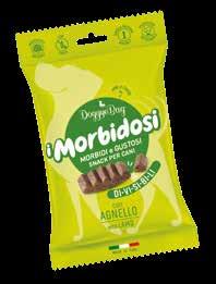 The snack that gives your dog pleasant breath thanks to Menthol which reduces bad breath and refreshes the oral cavity. The addition of Parsley, Sage and Mallow, aromatic herbs with balsamic e ects, contributes to oral hygiene.