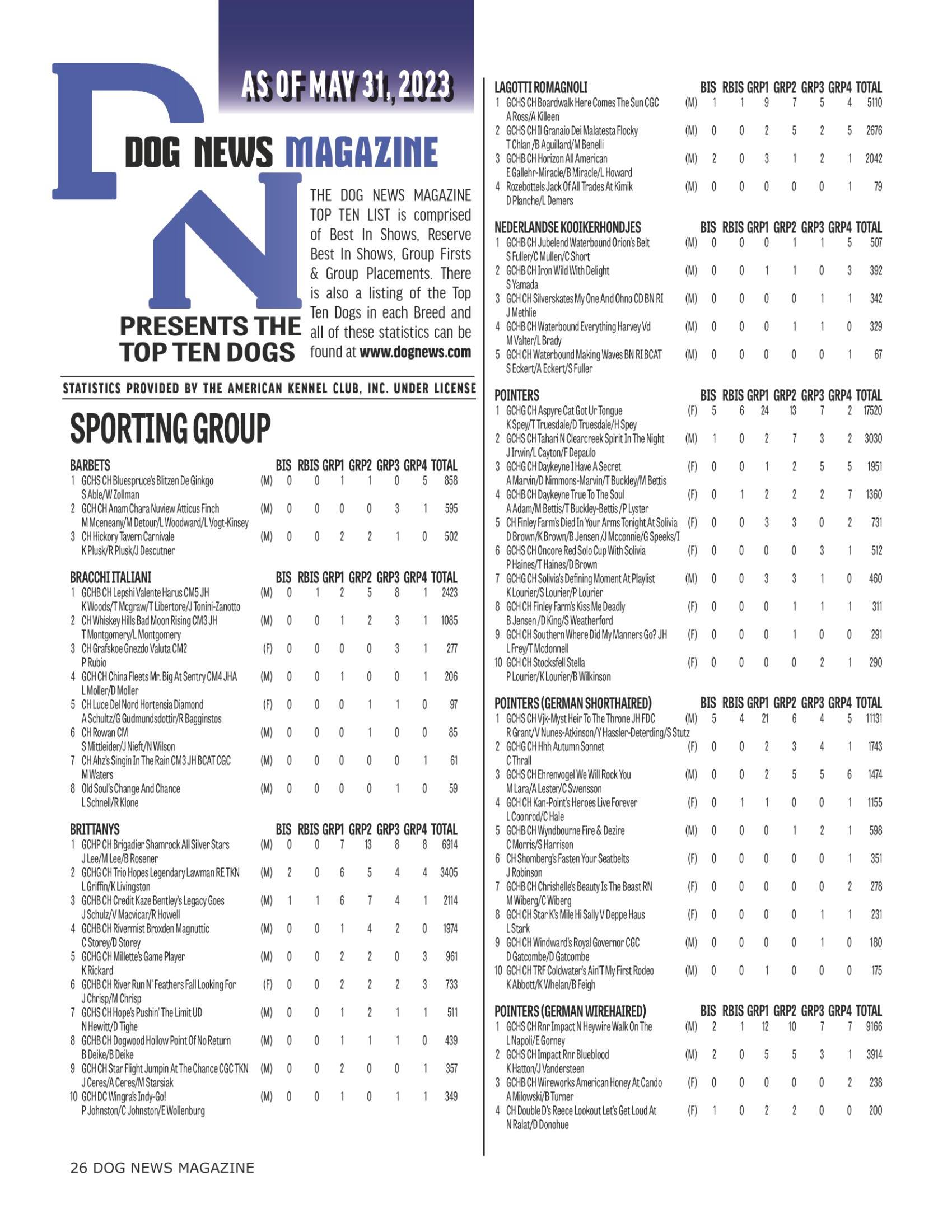 18 The Dog News Top 10 Dogs In Each Group