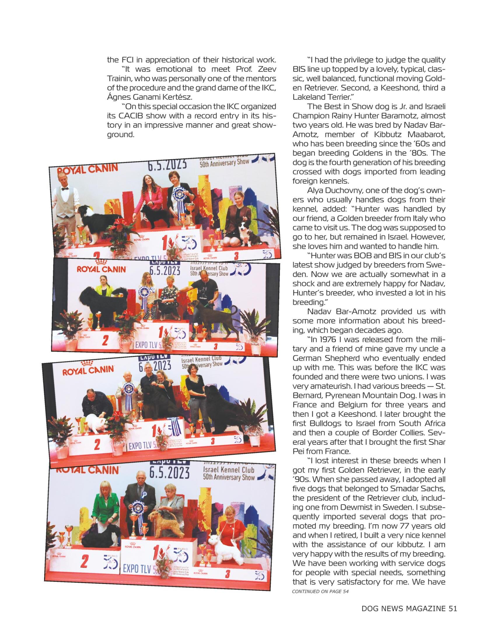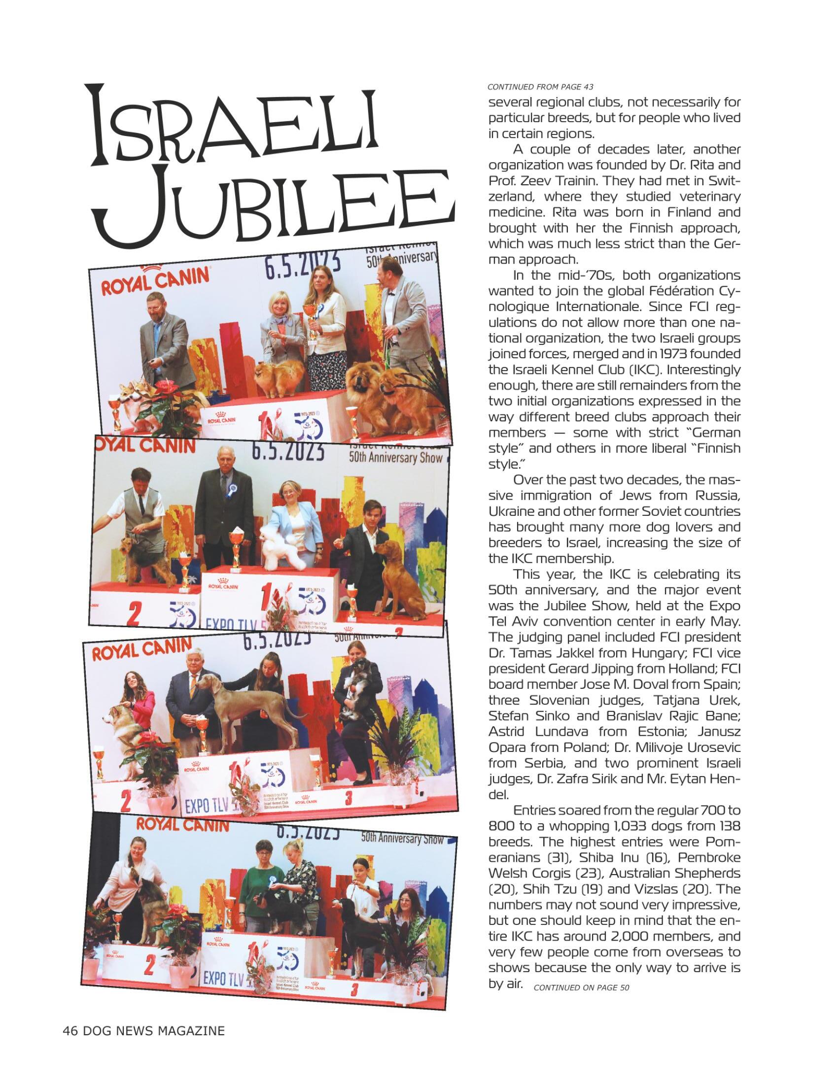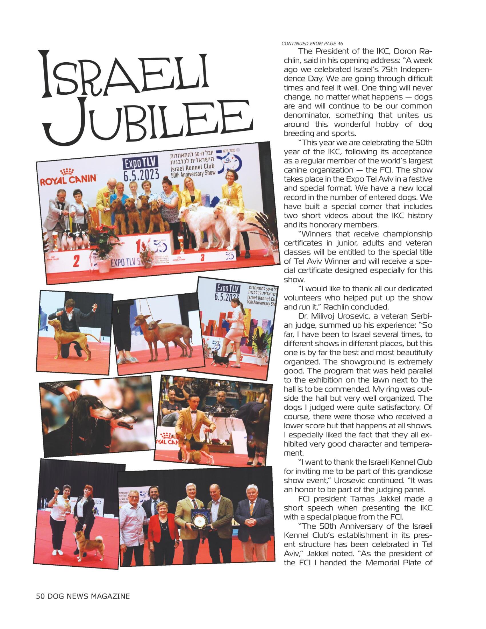 42 Israeli Jubilee - Israel’s Kennel Club celebrates its 50th Anniversary By Yossi Guy