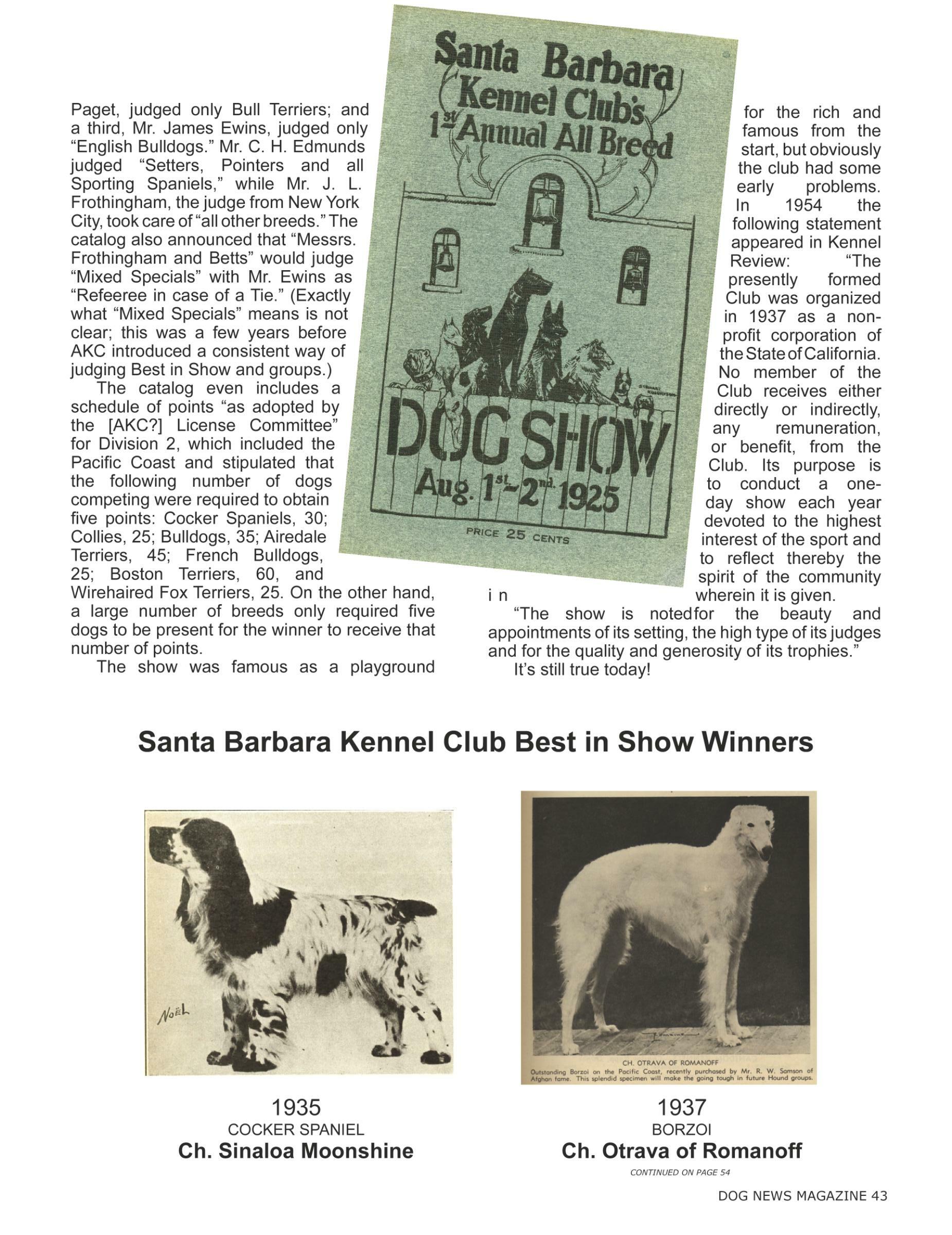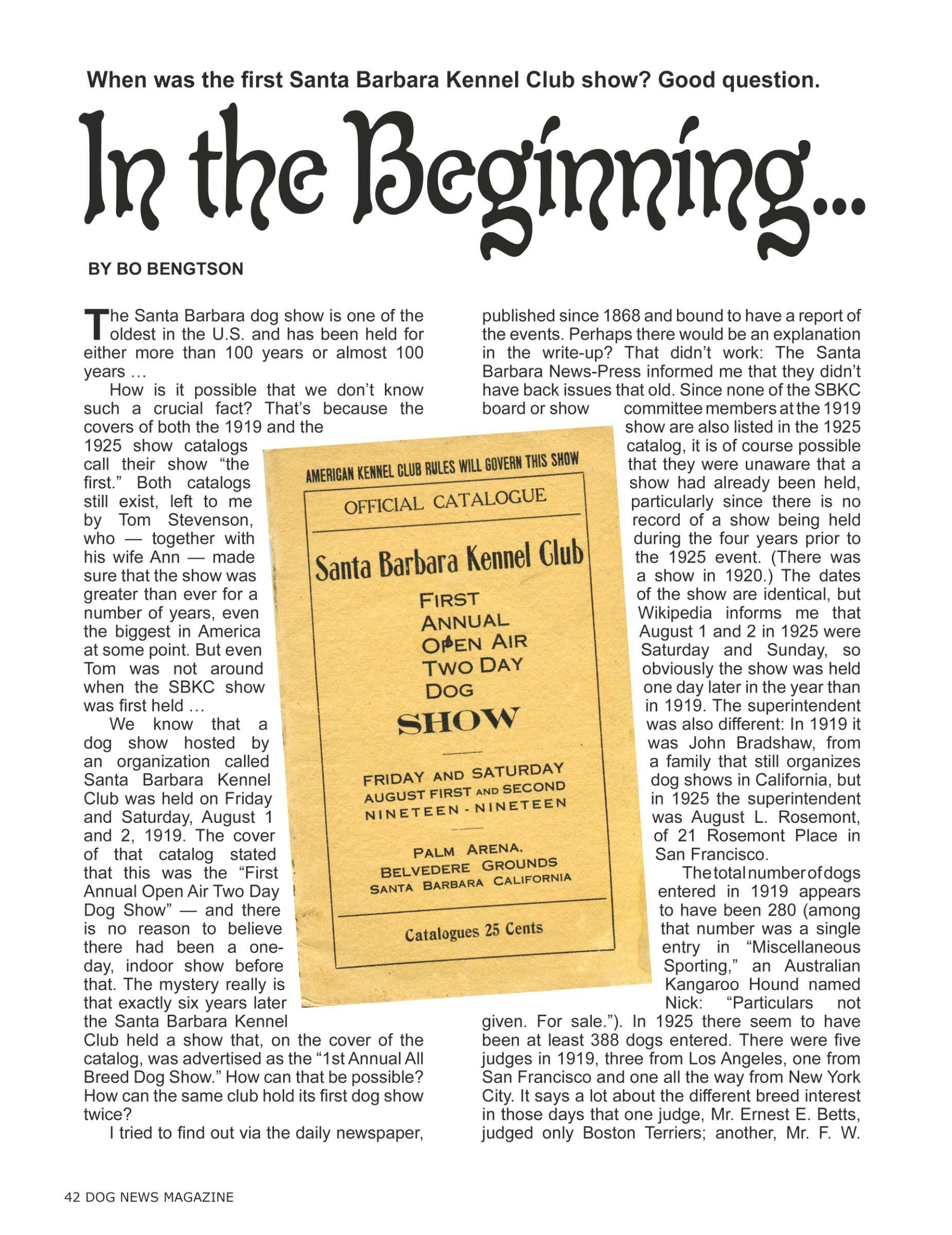 42 In the Beginning... When was the first Santa Barbara Kennel Club show? Good question. By Bo Bengtson
