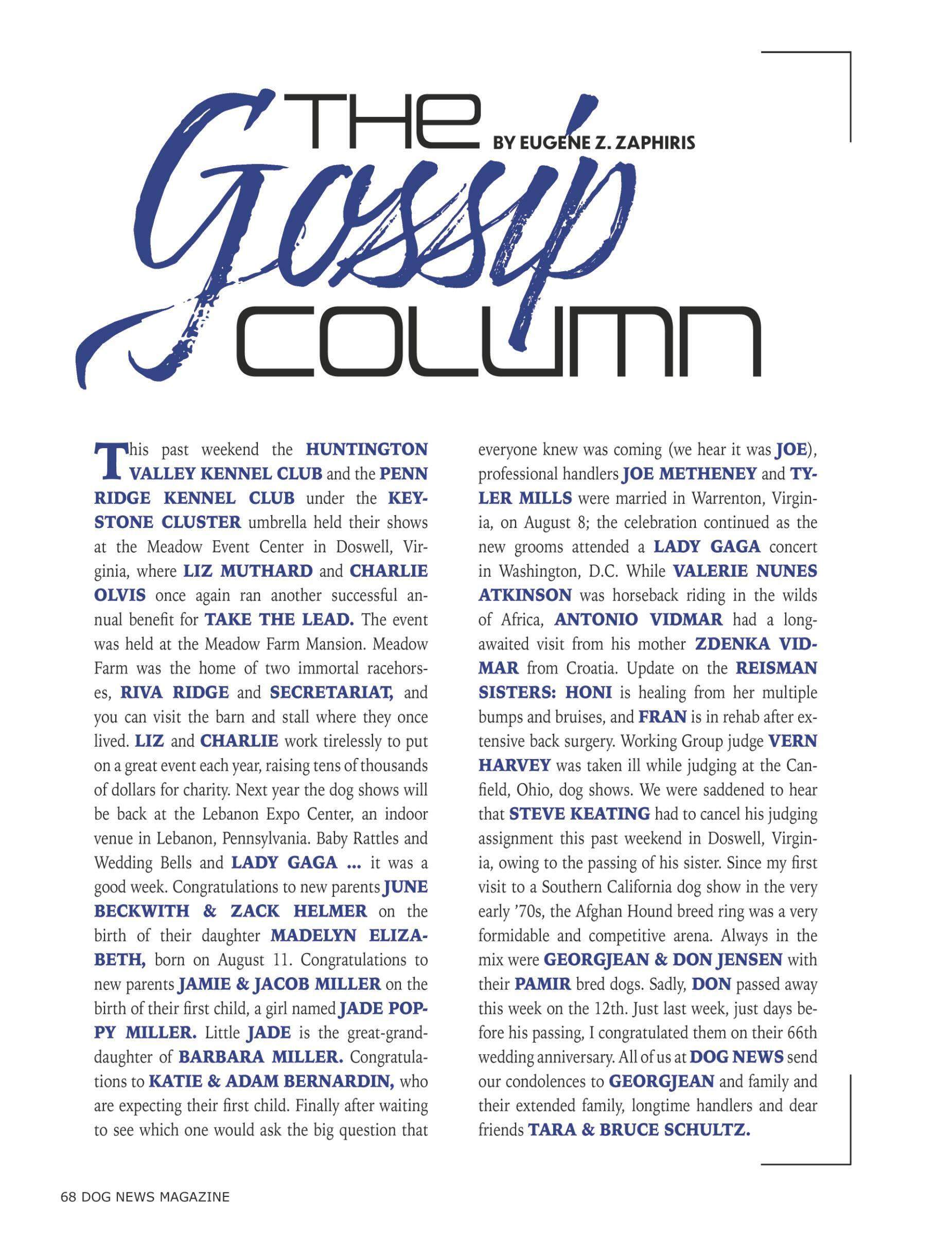 68 The Gossip Column By Eugene Z. Zaphiris