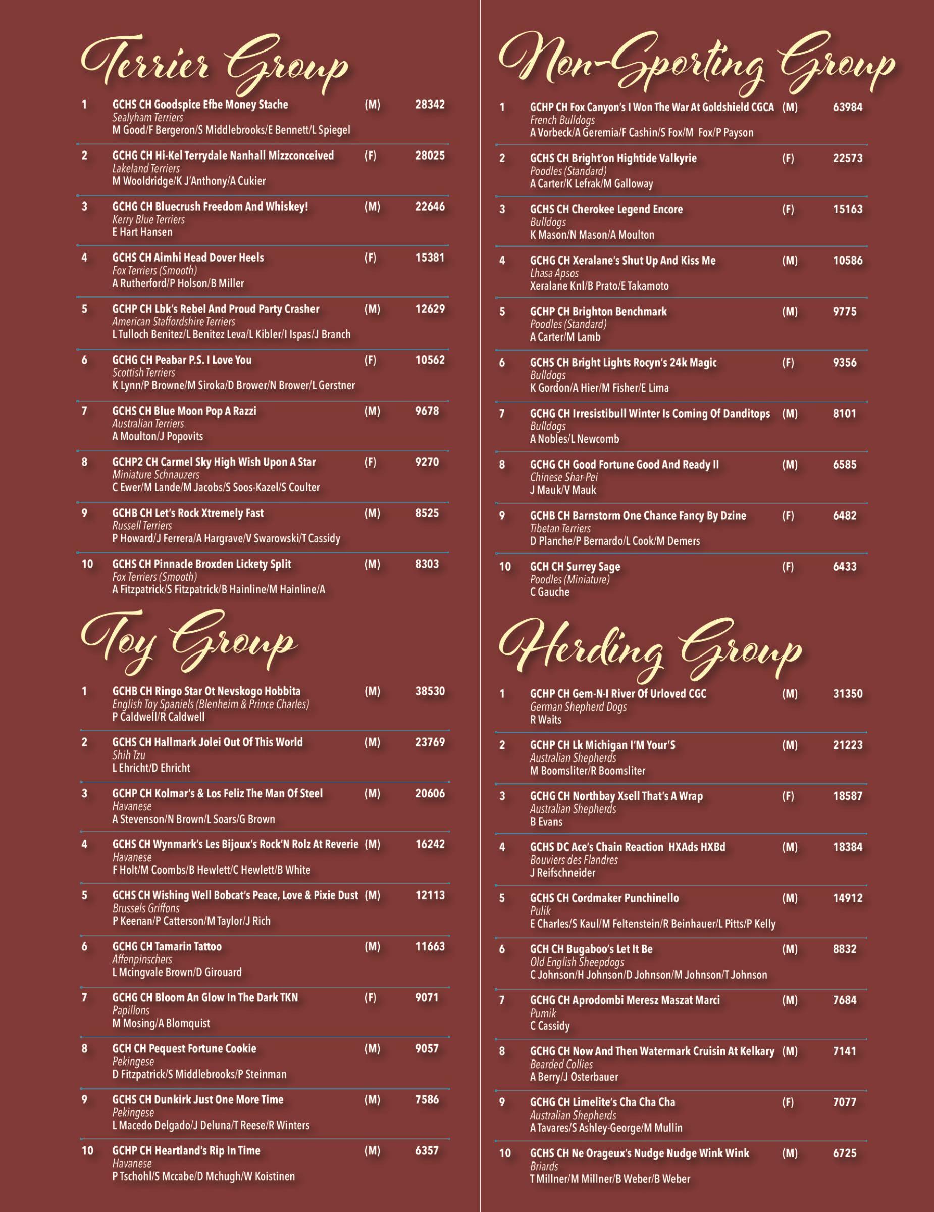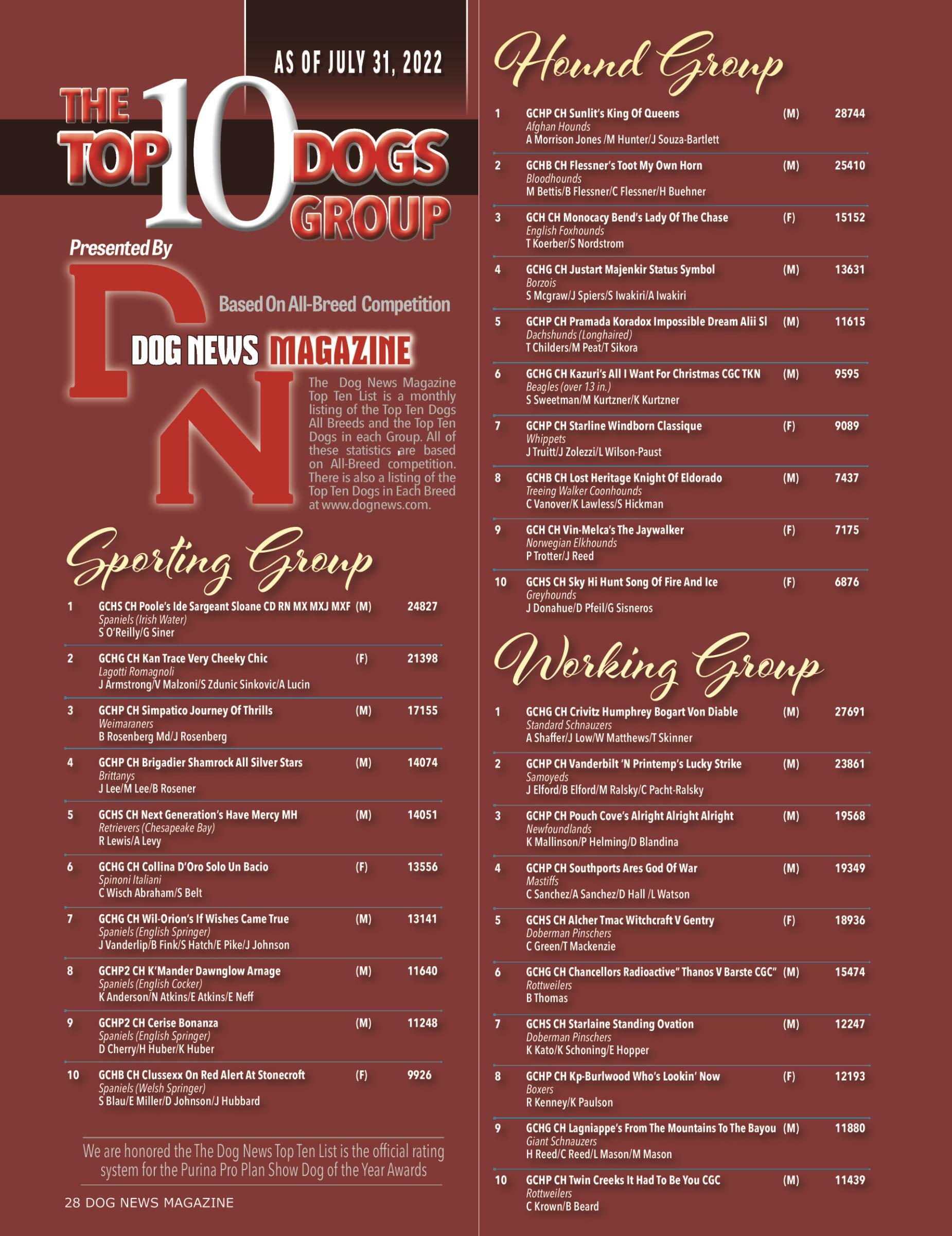 28 The Dog News Top 10 Dogs In Each Group