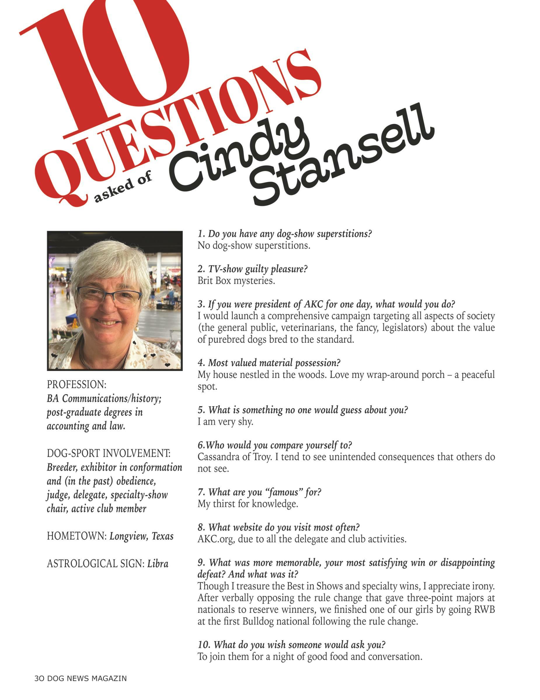 30 Ten Questions Asked of Cindy Stansell