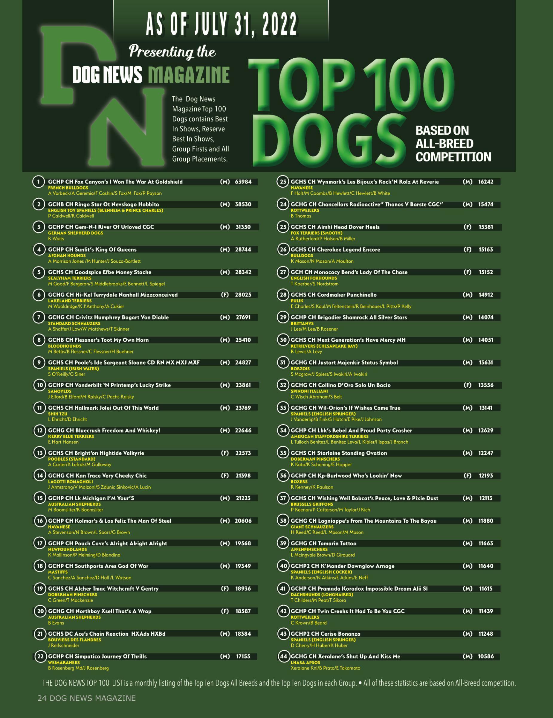 24 The Dog News Top 100 Dogs