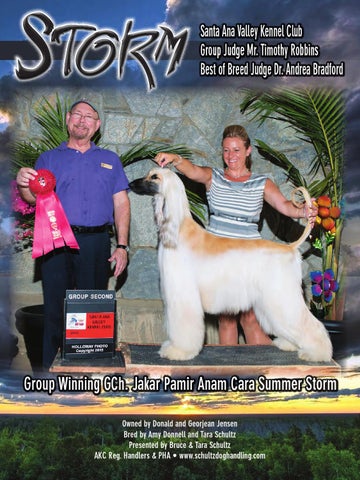 Group Winning GCh. Jakar Pamir Anam Cara Summer Storm Owned by Donald and Georjean Jensen Bred by Amy Donnell and Tara Schultz Presented by Bruce & Tara Schultz AKC Reg. Handlers & PHA • www.schultzdoghandling.com