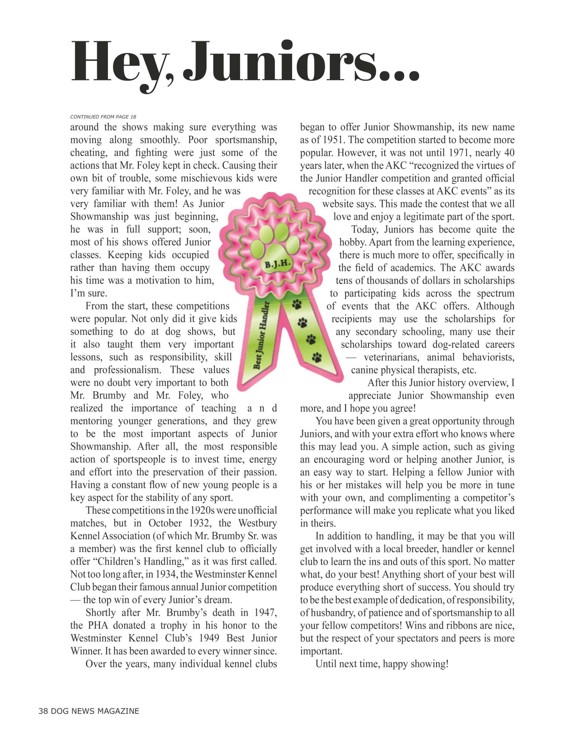 18 Hey, Juniors… History of Junior Showmanship By Jacob Waters