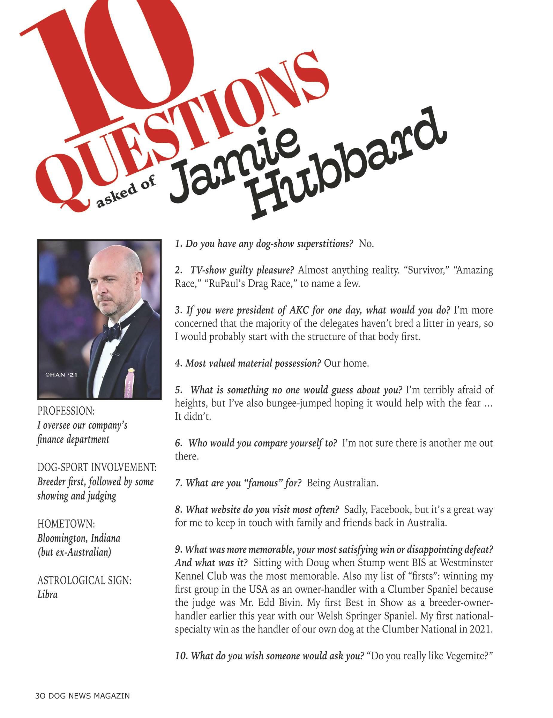 30 Ten Questions Asked of Jamie Hubbard