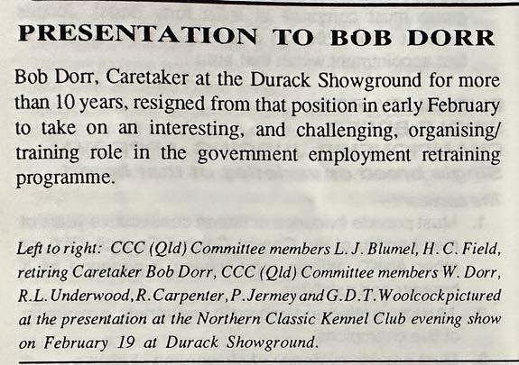 Ulla Greenwood, Ainslie Carius and Patrice Johansen. Their dedication and commitment over the years is greatly appreciated. We wish them well with their continued enjoyment of our dog world.