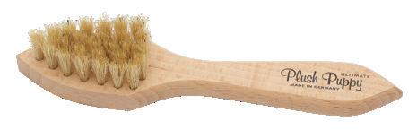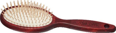 A brilliant grooming brush for all coat types & a favourite for puppies. 100% anti-static natural wooden pins smooth the coat and prevent flyaways. They delicately loosen knots and reduce pulling on the coat to prevent breakage while massaging the skin to revitalise natural lustre.