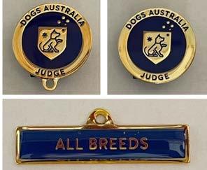 The following Dogs Australia Judges Badges and Discipline Sporting Bars are now available for purchase: Judges (with loop), Judges (no loop), All-Breed Judge Bar, Agility Bar, Obedience Bar, Tracking Bar, Track & Search Bar, Retrieving Bar, Field Bar, Earthdog Bar, Dances With Dogs Bar, Herding Bar, Endurance Bar, Rally Bar, RATG Bar, Trick Dog Bar, Lure Coursing Bar, Weight Pull Bar, Bar, Sledding Bar, Scent Work Bar and Double Split Rings.