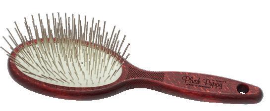 A pin brush with thicker pins for those thick, dense, and hard to get through coats Many breeds have coats that don’t allow a “normal” pin brush to efficiently brush and dry. This thick pin allows the pins to penetrate these coats to ensure the coat roots to coat tips are correctly and thoroughly brushed.