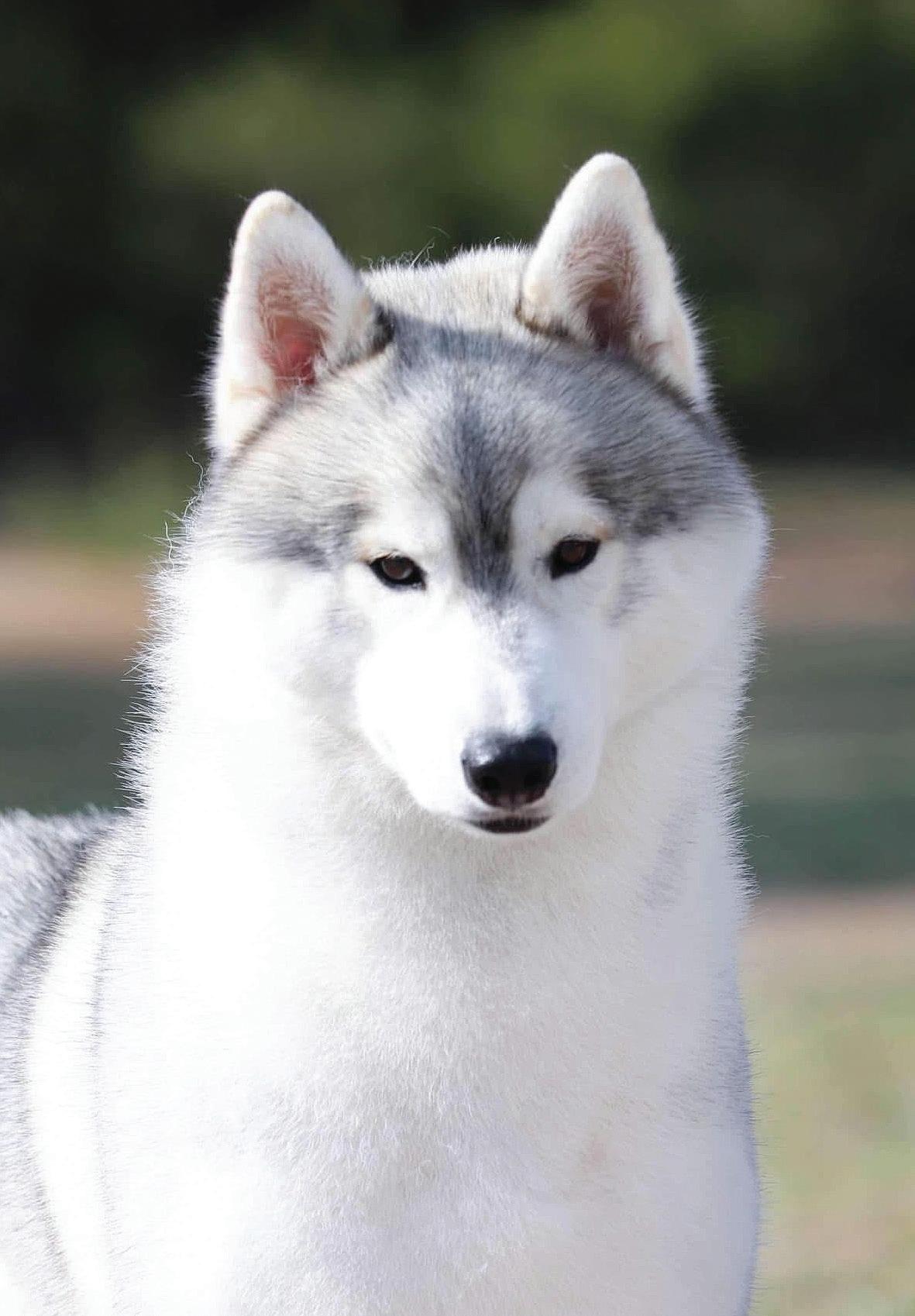 “Siberian Husky: A thickly coated, compact sled dog of medium size and great endurance, was developed to work in packs, pulling light loads at moderate speeds over vast frozen expanses. Siberian Huskies are friendly, fastidious and dignified. Quick and nimble-footed, Siberians are known for their powerful, but but seemingly effortless gait.”
