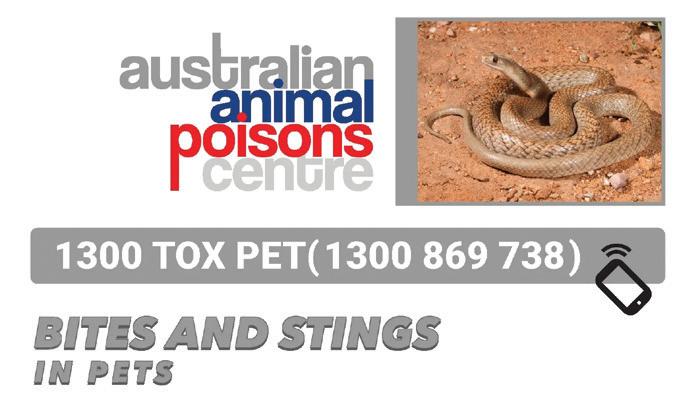 • Bites & Stings in Pets: https://animalpoisons.com.au/wp-content/uploads/2019/07/Flyer-_ BitesStings_web.pdf