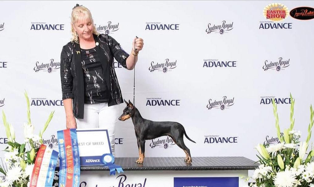 Above: ‘Australia’ competing at the 2023 Sydney Royal Easter Show with Vicki. First Place Duel Championship Class ~ Excellence in Conformation & Obedience ~ First Time Offered.