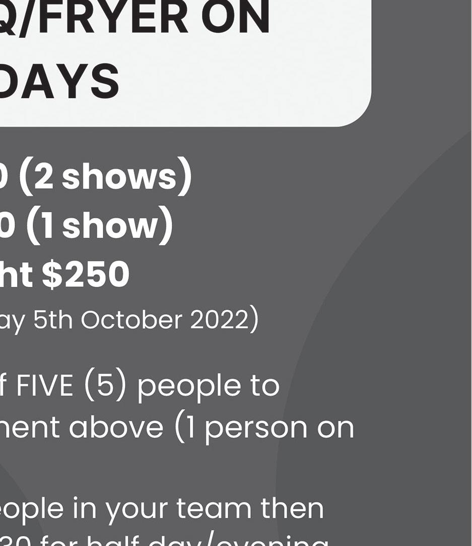 Specialist Clubs – Marsula or Brine Room Show Days only 39.00