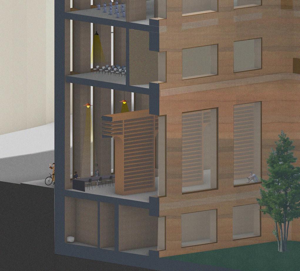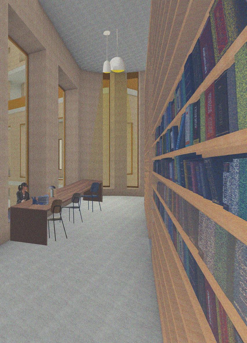 INTERIOR PERSPECTIVE OF THE LIBRARY SPACE