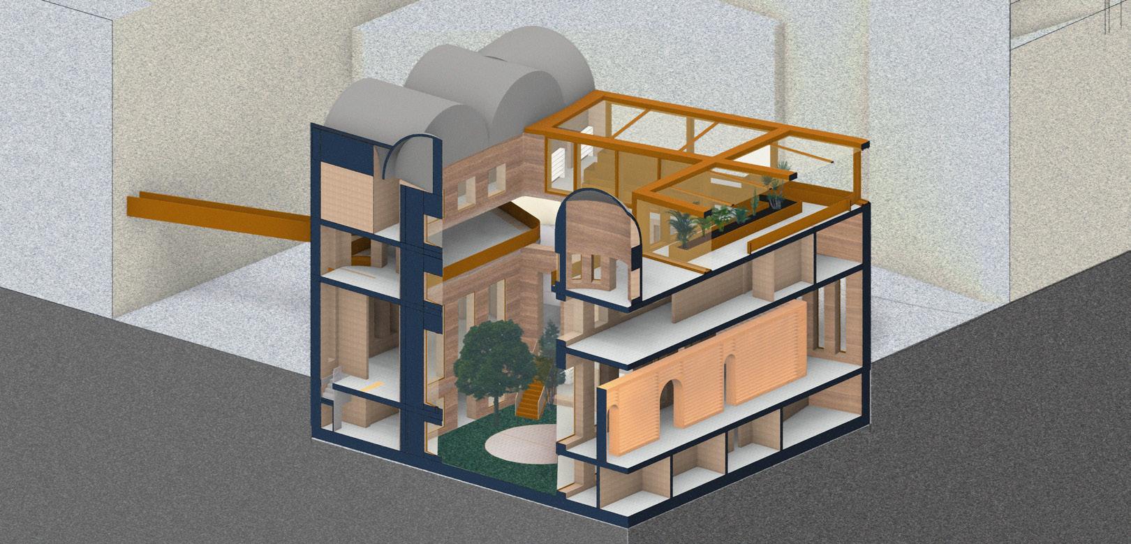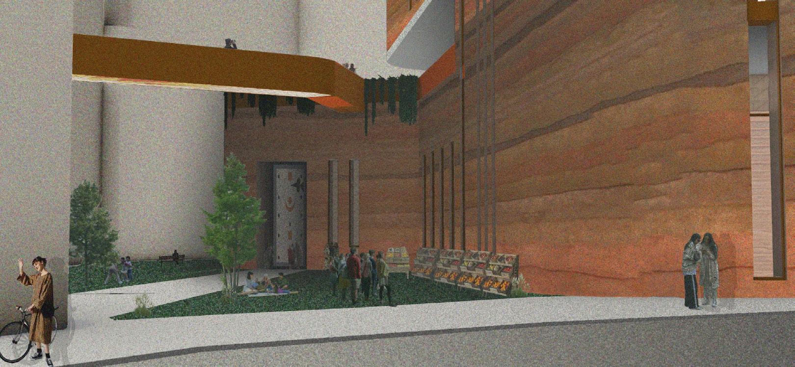 The proposal for D,akin Karatu utilises the area’s historical and ecological significance. It is proposed to be built on the site of the former Museum of London. By it’s proximity to green areas like St Paul’s Churchyard Gardens and encouraging sustainable transportation, this development could really enhances urban biodiversity. It is conveniently accessible by nearby underground stations, both bus stations and train stations. The proximity to the River Thames promotes hydrological sustainability through features like rain gardens and green roofs. Borehole studies suggest using local soils for sustainable construction methods like rammed earth.