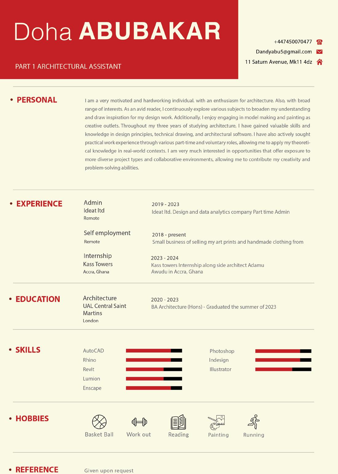 ARCHITECTURAL ASSISTANT : DOHA ABUBAKAR