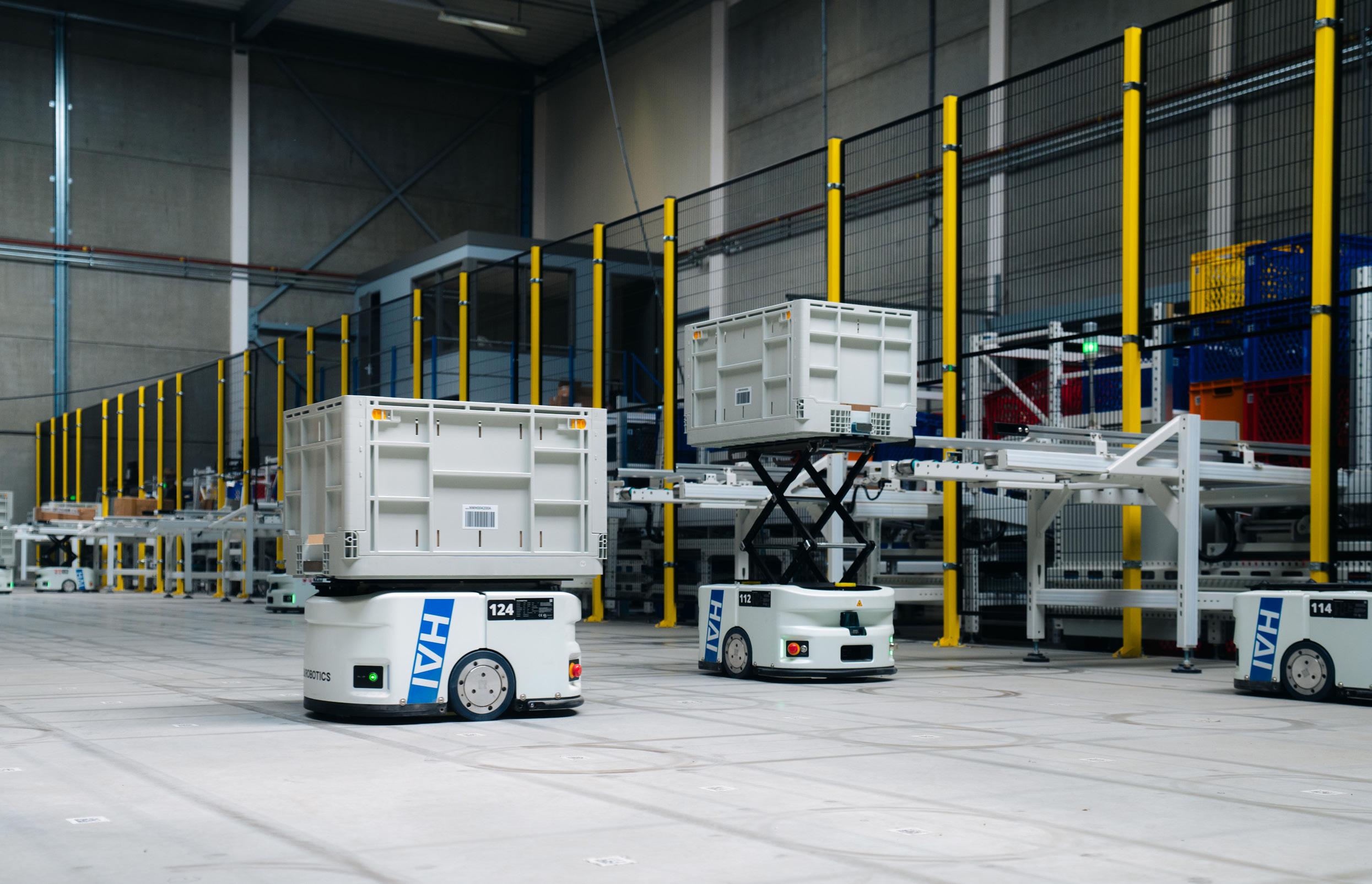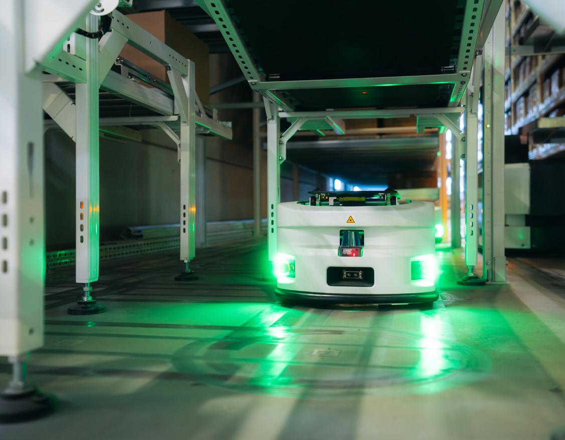 With 16 large (ACRs) and 30 smaller (AMRs) robots, the system ensures fast and error-free order processing. Because of its scalability and compact design, this solution is a future-proof replacement for manual picking and replenishment processes, without requiring major renovations to the existing facility.