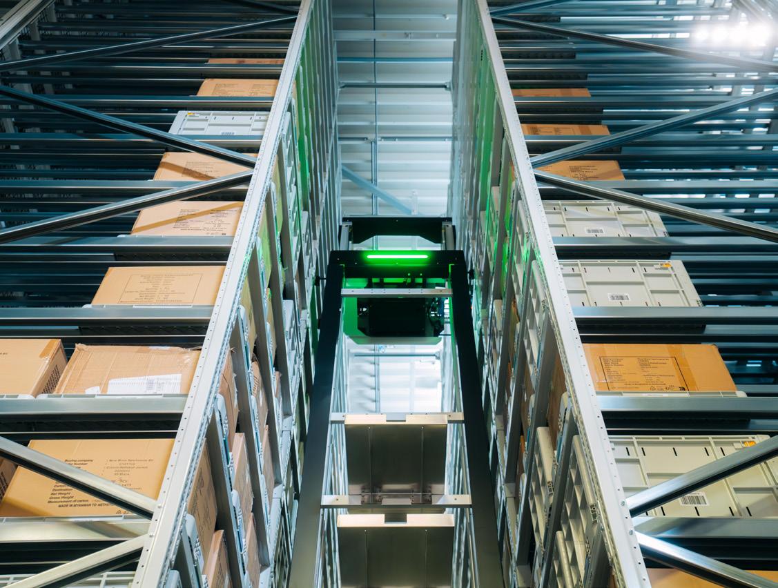 An advanced robotic system with over 132,000 storage locations, delivering maximum storage density and fast, error-free order processing.