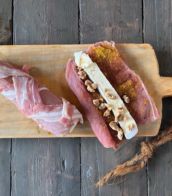 Step 1: Slice the brie and place it inside the pork tenderloin.
