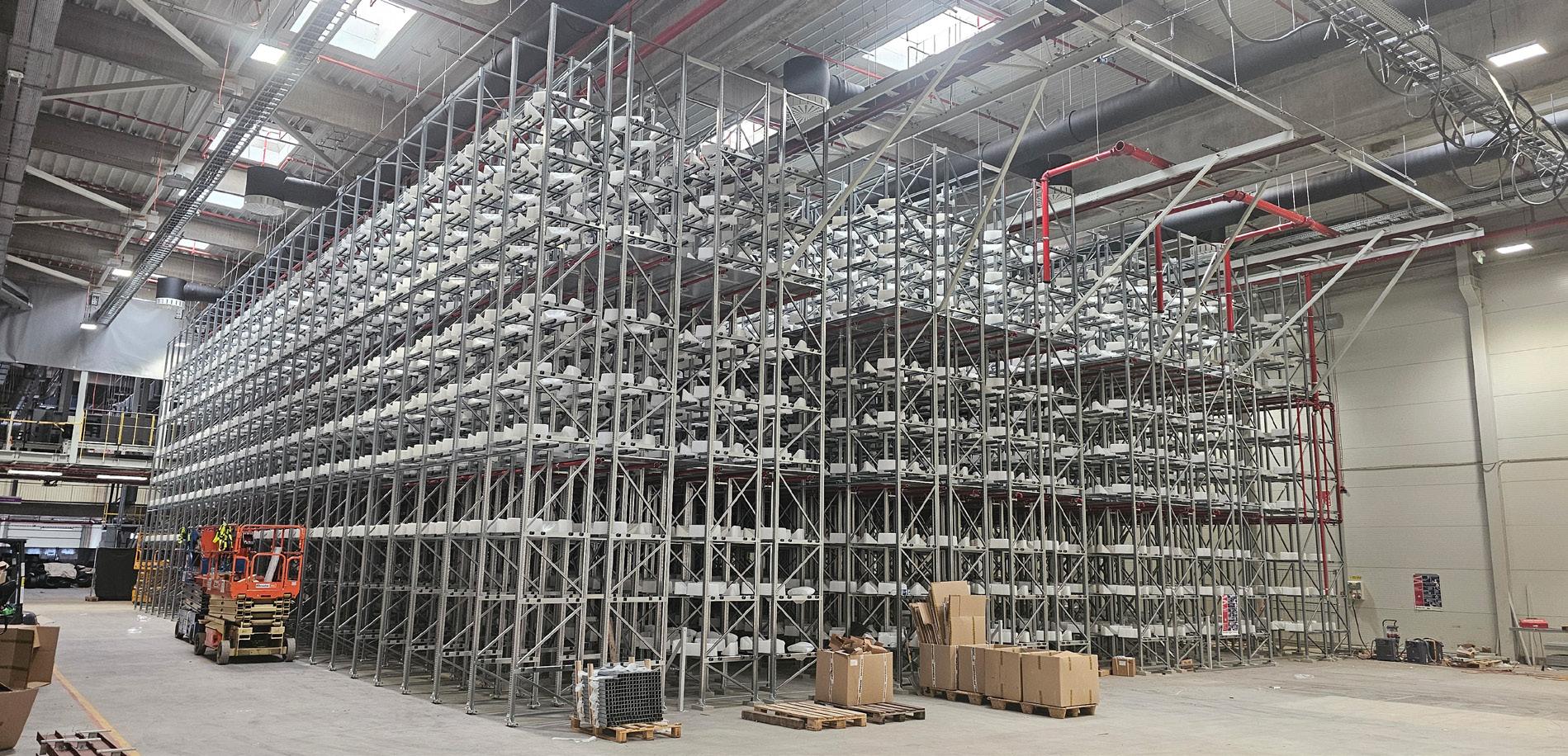 23,952 pallet locations 950 shelving boards 10 weeks installation time