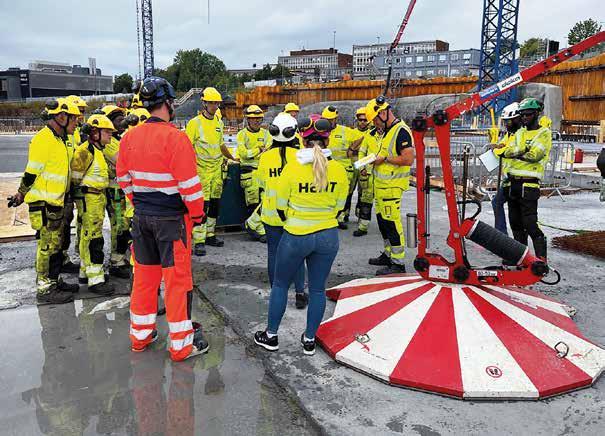 Säkerhet, hälsa och arbetsmiljö har högsta prioritet på byggarbetsplatsen. Alla måste vara säkra på jobbet. Om HENT´s-medarbetarna behöver utbildning får de träffa Nenad Savic, Doka´s formsättningsintruktör, som visar hur det mobila fallskyddet FreeFalcon används. Tack vare FreeFalcon är de säkra vid valvkanten samt har obegränsad rörelsefrihet.