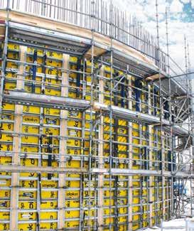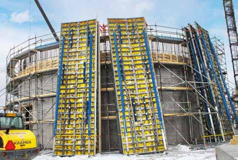 Formsystem som används: RTU - Ready To Use - förmonterade formelement från Doka, levereras färdiga att monteras till de runda tornen, Framax Xlife plus - För ytterväggar i källare, Dokamatic - formbordssystem för valven i tornen, FreeFalcon - Fallskydd på alla nivåer