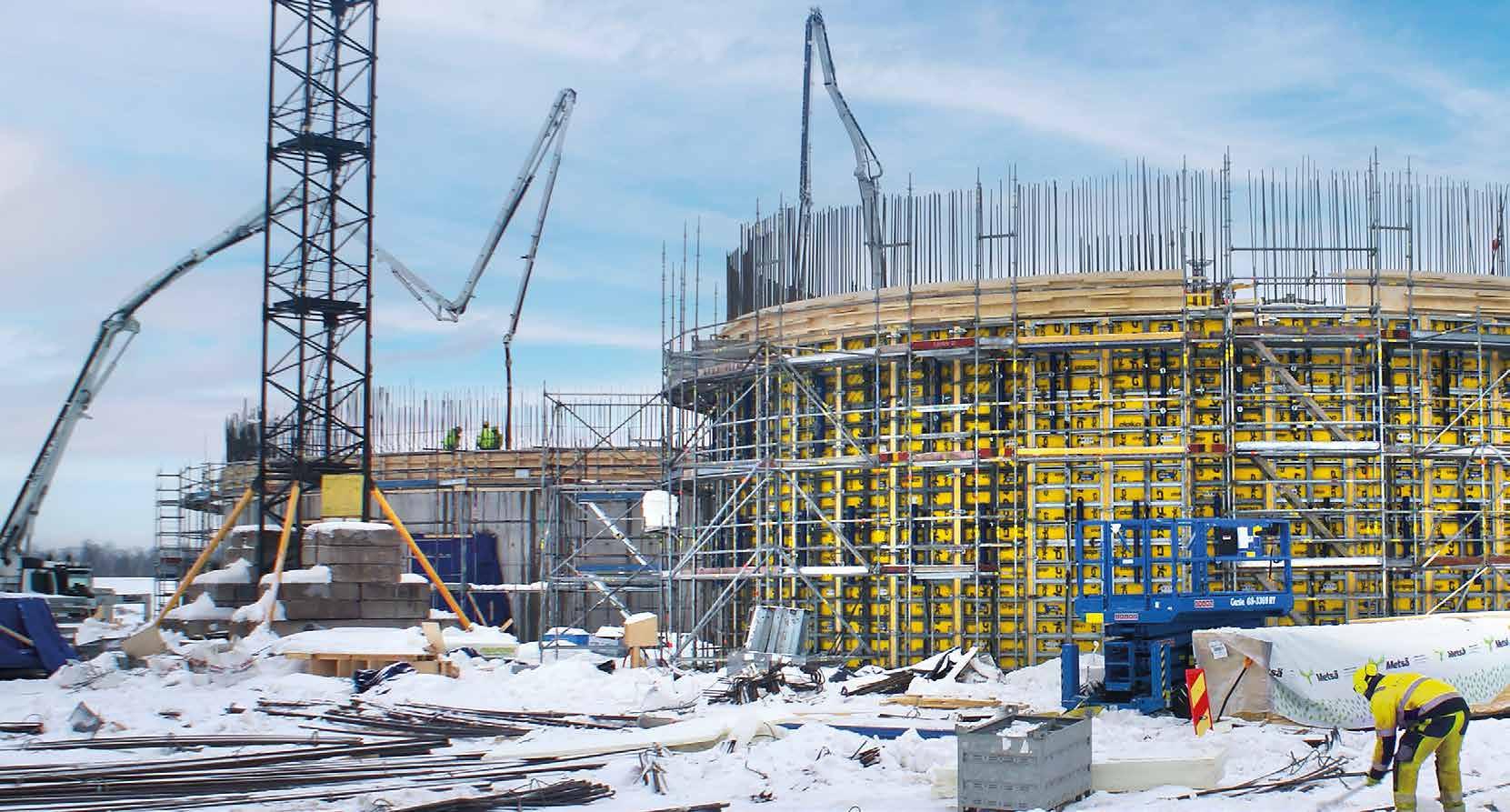Doka-produkter i Kemi, företaget har även vid tidigare siloarbeten förlitat sig till våra blå-gula formsättningar. Doka’s Framax Xlife plus-formsättningssystem har även tidigare uppfyllt Skarta´s behov.