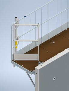 Die im Belag einsteckbaren Seitengeländer XBS sind aushubgesichert und lassen sich wie eine Tür öffnen.