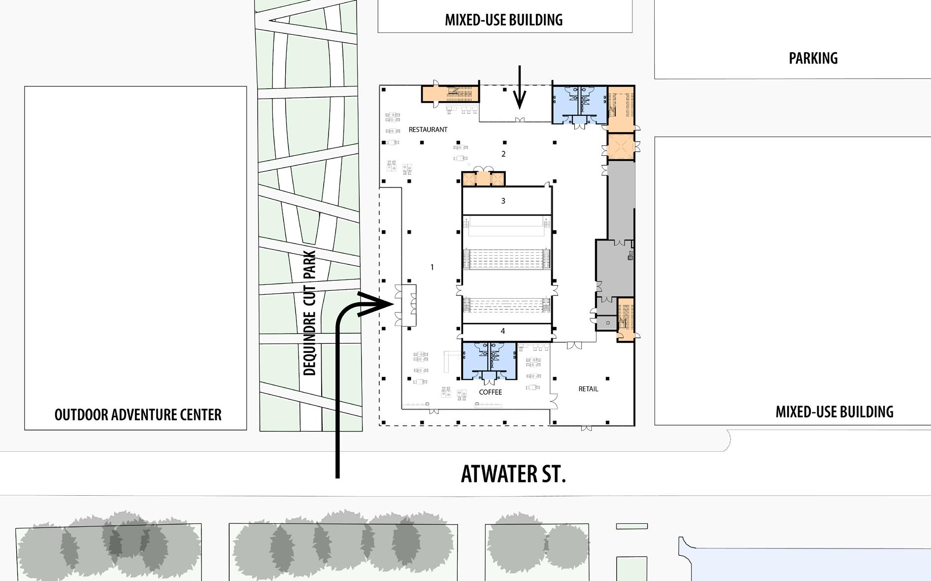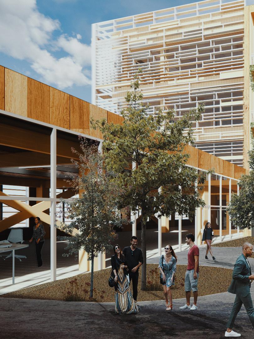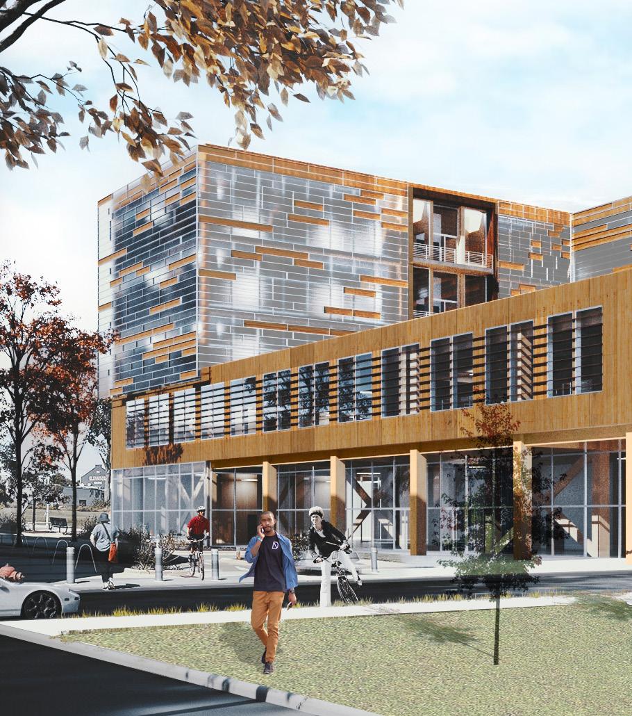 GLETA HQ is a mass timber office building, that aspires to create a sense of community through the neighboring local buildings and Riverwalk. It provides visibility to the Detroit Riverfront and connects users from the townhouses, Outdoor Adventure Center, and the harbor as a way of embracing the spirit of the Detroit Riverfront and evoking memories and emotions associated with it. GLETA also creates a sense of place for the building tenants; by providing user comfort, personal choice, and flexibility of program – by adapting to an open floor space. Through the utilization of renewable energy and a sustainable mechanical system, GLETA becomes a friend to the surrounding neighborhood of Rivertown - GLETA becomes a hub for energy production as it aims to be a below net-zero building.