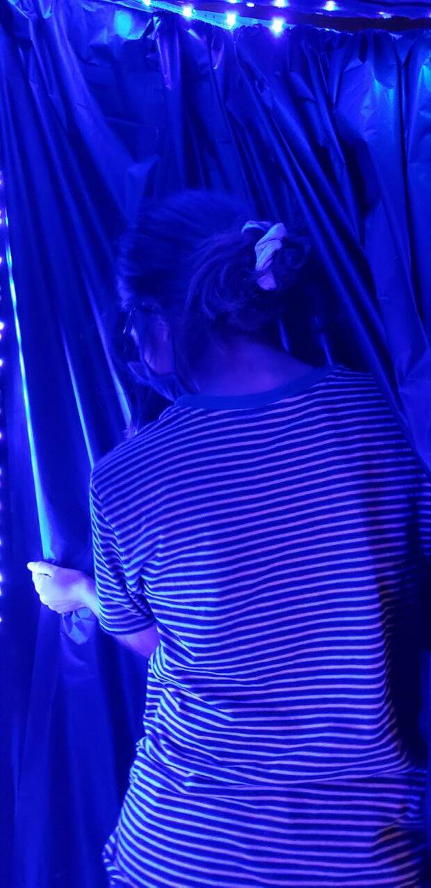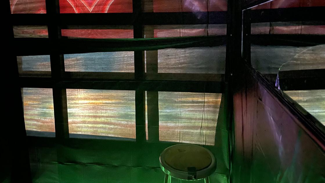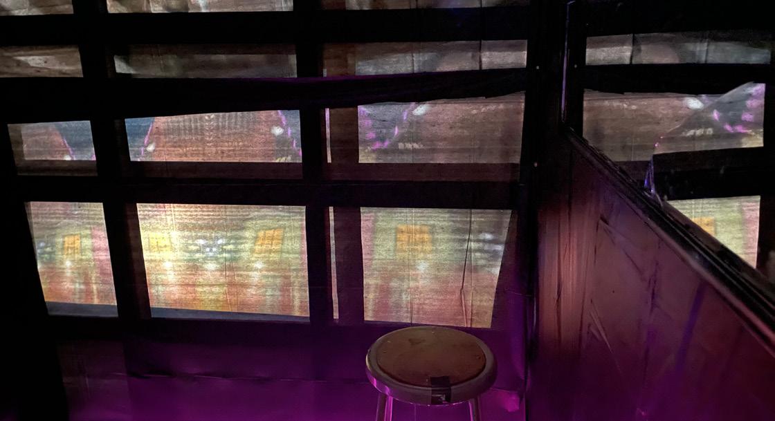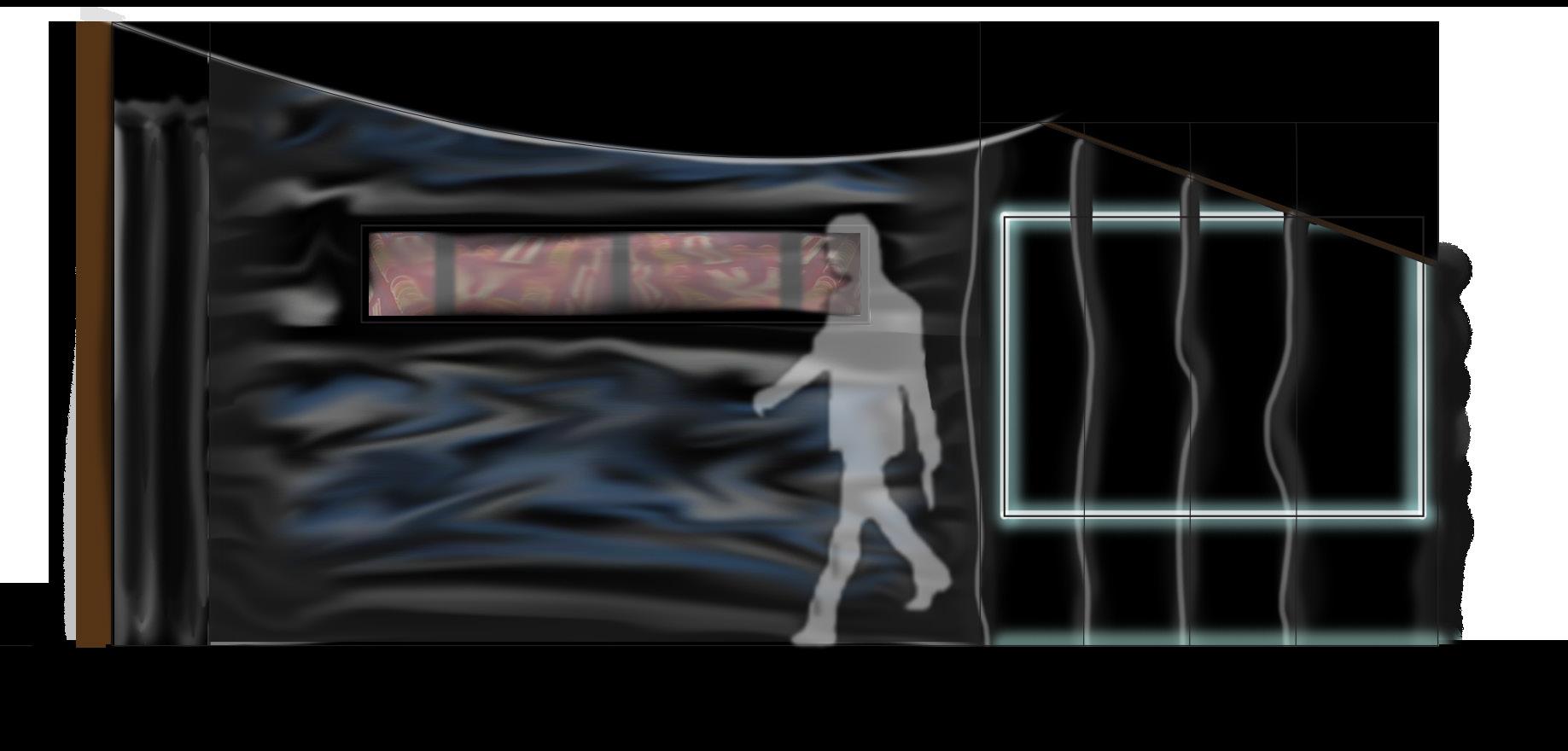 For this installation we created a secluded, disorienting environment/experience by designing a hybrid installation combining both virtual and physical media. We plan to expand on a previous ideas we had used and utilize the following film techniques: close-up shots, pacing, camera rotation, and mise-en-scène in the projected videos. Our inspired film had strategies like focusing on urban details at night and we did this too.