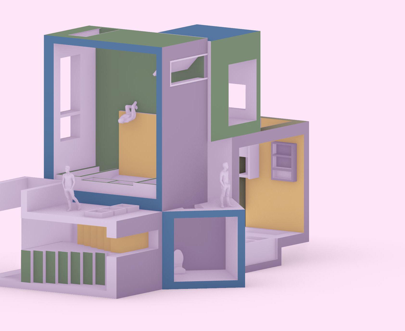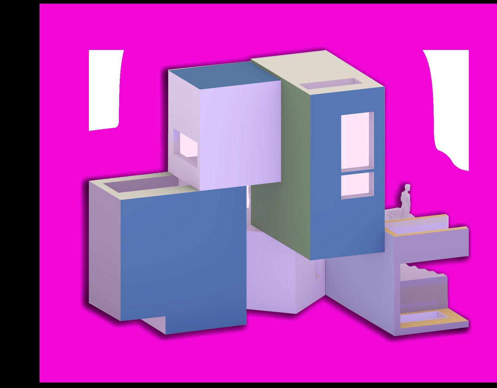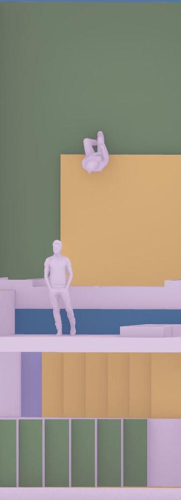 The intention for this project is to create dream like reality architecture. To create this playful architecture, I played with the use of color, and form, as well as how the law of gravity, and camera usage. This model with playful gravity orientation could only be accomplish through rendering softwares.