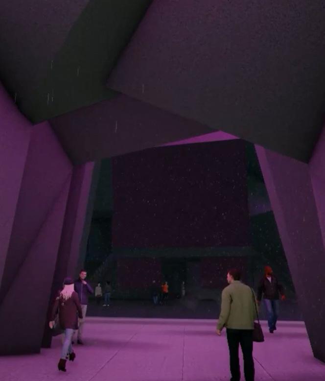 Our intention for this final project was to create a space that is immersive, experiential, and sensorial.Expanding on our Filmic Installation Project to create a secluded, disorienting environment and sensorial experience by designing a hybrid installation combining both virtual and physical media like our installation. Our film precedent again, was Blade Runner, and the incorporating idea of ‘architecture of the mind’ derived from Juhani Pallasmaa’s. We inteded to bring out the night scenery life of Blade Runner, and match