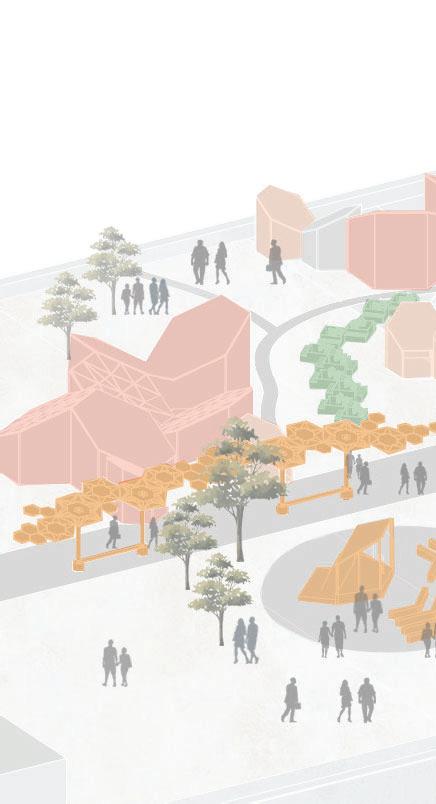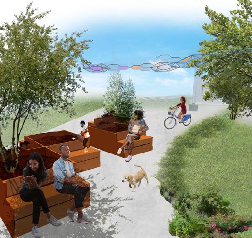 Th The HEX vision is to arts and culture hub, taking advantage of all 18 lo 18 lots’ square footage and embracing their existing greenery and and open ambiance, making the space goal to be an space inviting neighborhood gathering space to the Chadsey Condon neighborhood. The proposed modular de design would allow the site to various activities onsite at a particular time. The intent is to create a vibrant vibrant, we welcoming environment for all generations to enjoy and feel they have a space to identify. The HEX provides a community voice, allowing community members to decide on the placement of structures and paths onsite. The intent is to mi-permanent begin with semi-permanent structures, and over time will have the ability to become pe permanent structures if the community wishes them to be so. The community has the opportunity to inte interact with the structures and add their own artwork to the building facades. Creating spaces that can be used for needs and will ge Cultural longevity of Garage Cultural, having of income community partnerships and sources of income ––