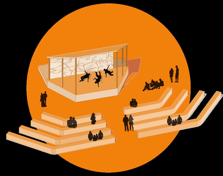 My area of focus within my group was to design three specific elements of design for site, from the alley being celebrated, to the stage being enjoyed, and lastly a garden component that would help educate users. These elements were thought off through our community engagement meetings with the owner Amelia Duran. We broke down elements into stages, to make elements