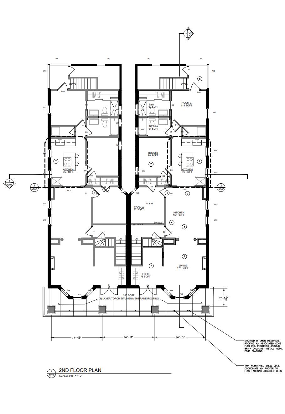 The objective of this project was to draw existing floor plans and transition it to a new design, necessitating the demolition of walls and the scheduling of windows, doors, and stairs to code . This project required multiple site visits for accurate execution, and only involved documentation of the second floor, and backyard patio.