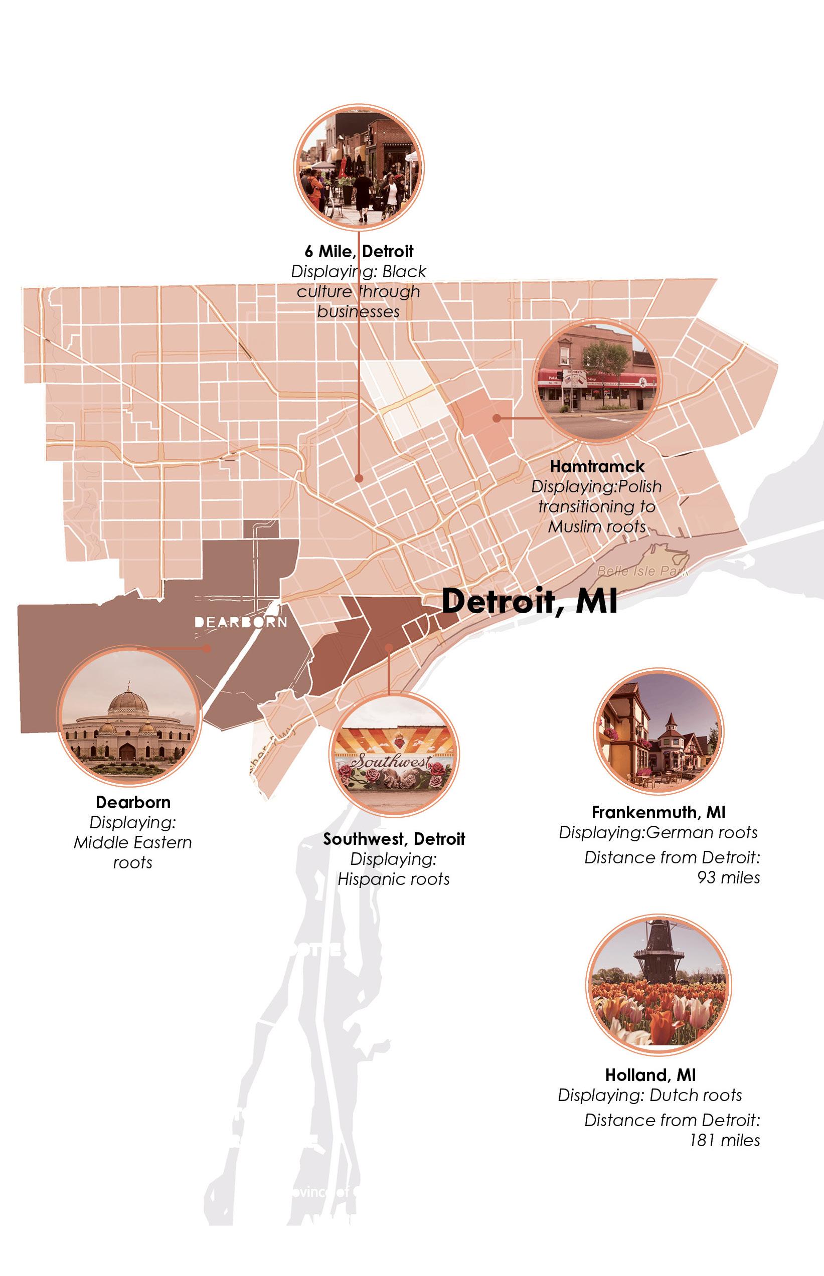 My thesis centers on the Hispanic neighborhood of Southwest Detroit, and how they have cultivated a sense of belonging through their cultural neighborhood image. There are various elements in the main commercial corridor (Vernor), that promotes the strong sense of identity and belonging among the neighborhood’s residents. These enclaves preserve rich culture displaying, it’s important to learn and investigate about these neighborhood backgrounds so that they keep providing their cultural identity. This thesis brings awareness, and celebrates neighborhoods that proudly showcase culture.