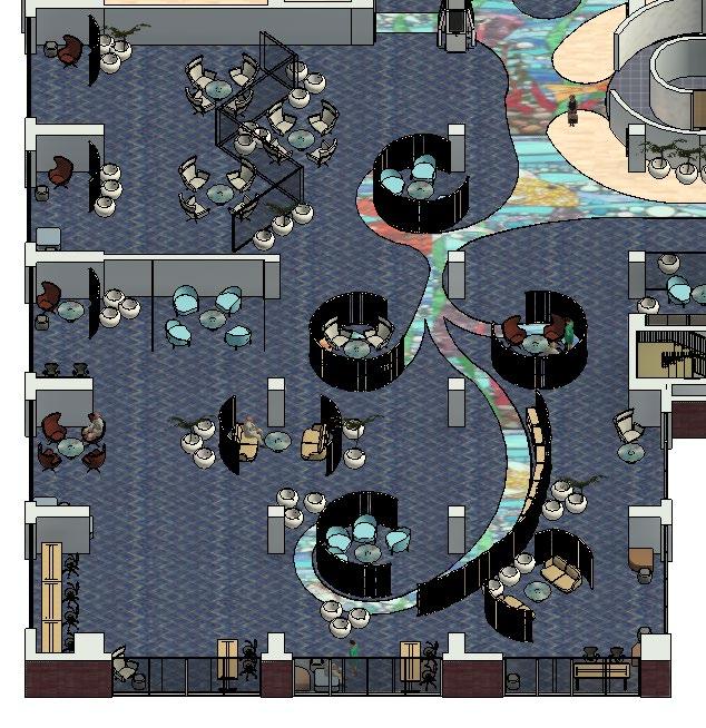 For my Senior thesis, I focused on community outreach. I believe offering a community building, in a diverse neighborhood, with a variety of spaces to unwind, get a beverage at the café and take an art or wellbeing class will inspire individuals to be part of a hub and community. There is a balance in nature which happens organically, like Fibonacci, and I wanted to design a center which inspires individuals to be part of a hub where they can spend time alone or with a friend in spaces which are quiet, secure and havens of natural light. The center offers open spaces with large windows for natural light and a place to walk among gardens and pathways. As the community enters, they see plants and earthtone colors in red, orange, blue and green throughout the spaces. I feel families and individual people in a community need a hub to gather and create lasting friendships which fosters wellbeing and balance. There is a game room, a community theater, locker rooms, art rooms, a yoga room, a gallery and a gift shop.