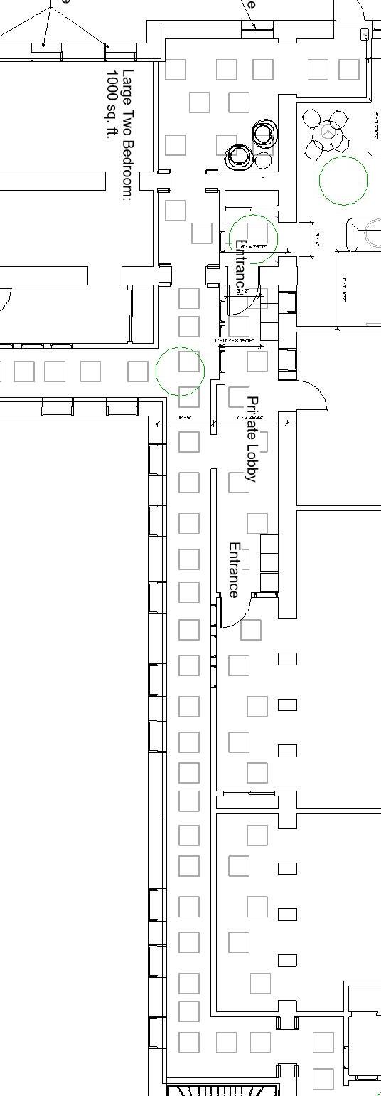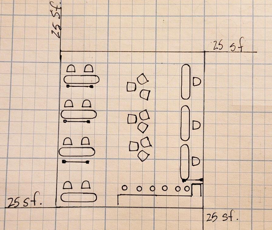 • Waiting Area (256) + Take Out/Pick Up Merch Area (128), standing = 384 @ 15” per standing occupant = 32