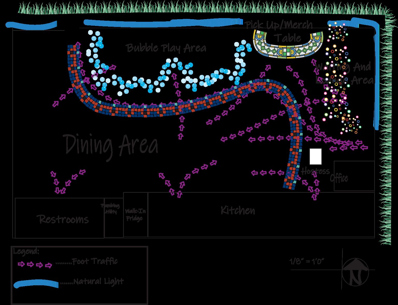 • Bubble Play Area, 256 sq ft (standing) = 16