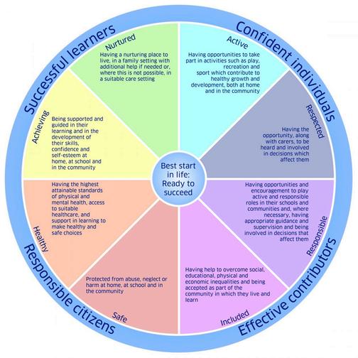 We believe in working in partnership with parents and carers as this achieves the best outcomes for the young person in question. Wellbeing is considered through 8 indicators (sometimes called SHANARRI) which help to identify need and any support required. The indicators are: