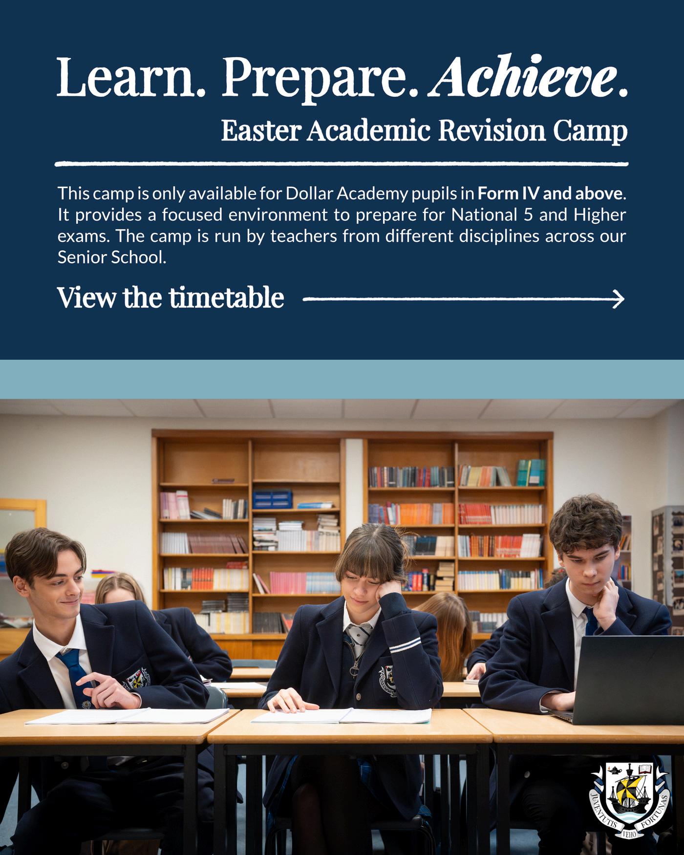 This camp is open to DOLLAR ACADEMY PUPILS ONLY SITTING NATIONAL 5 AND HIGHER EXAMS in the summer.