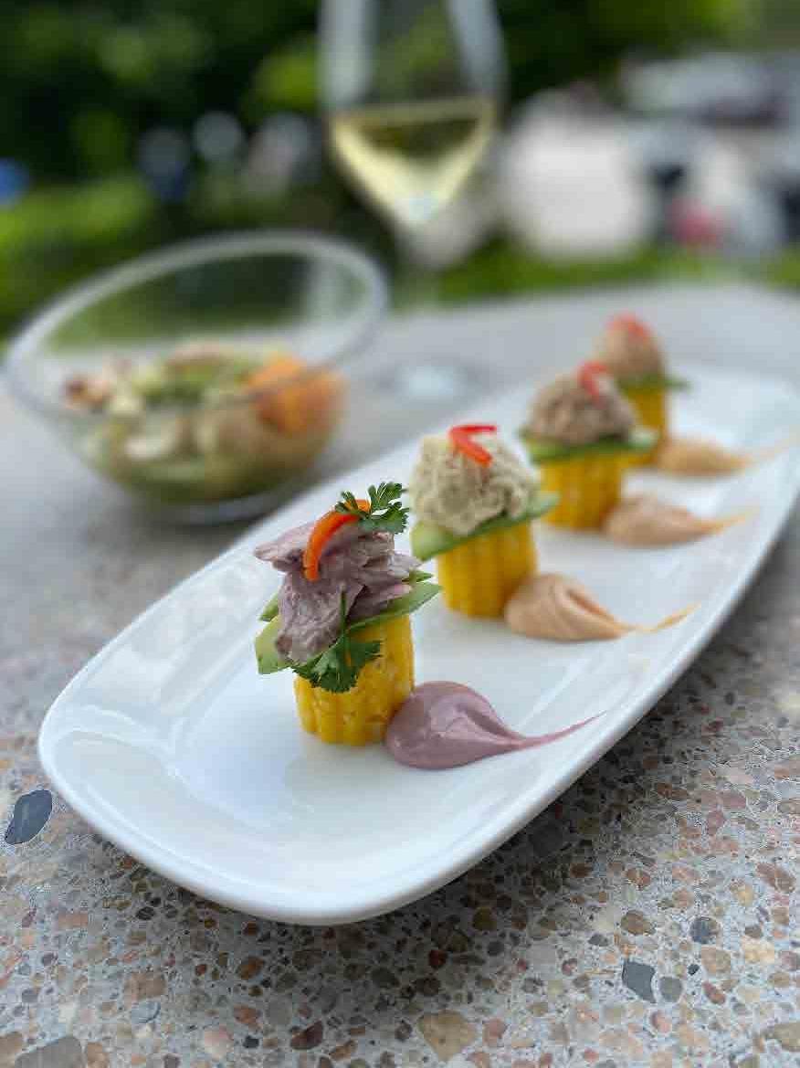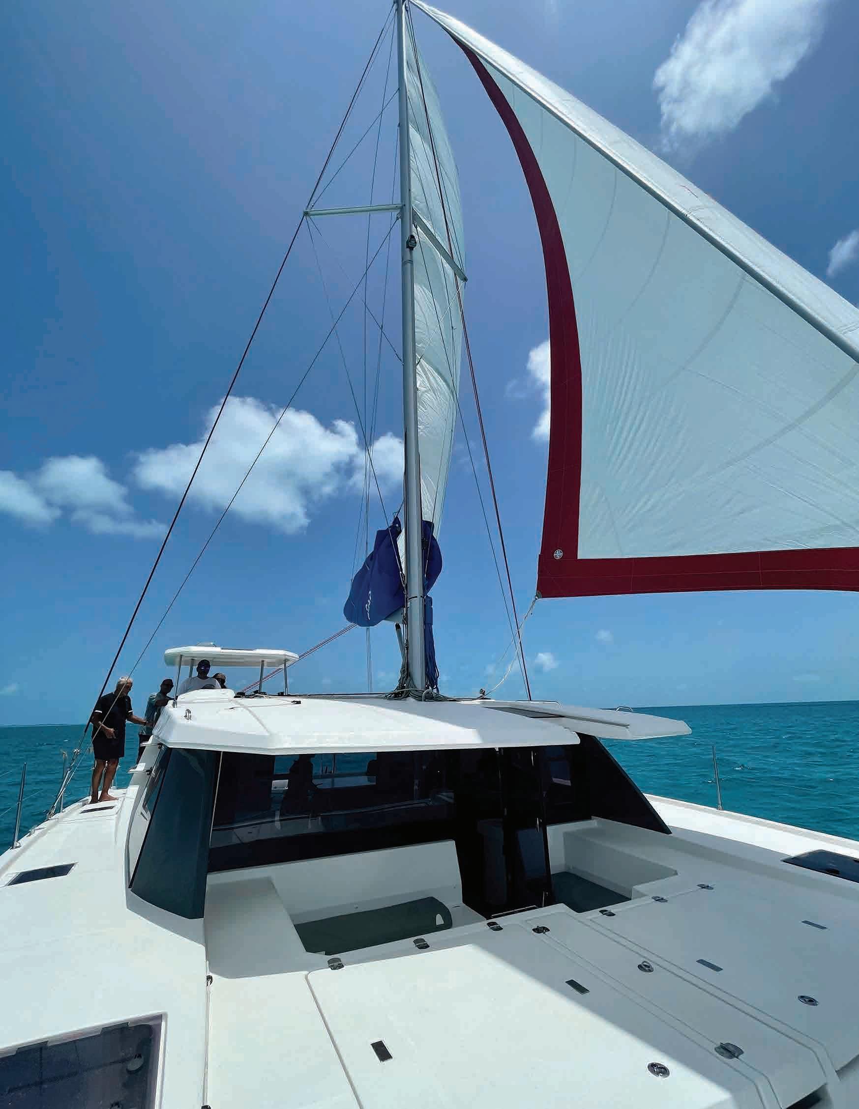 that was once a site for a James Bond movie. Two tips on this cave: 1) try to go at lowish tide in the morning when there are fewer visiting dinghies and 2) take some reef shoes to walk up to the top to jump through the hole in the ceiling and drop forty feet into the water below. We were only a few days in but not having the luxury of time like real cruisers, we had to turn back north so we set course for O’Brien’s Cay and the “Aquarium”. We picked our way there carefully and at one spot the crew thought we were anchoring because we came so close to land. There were at least five different hues of aquamarine waters around us that changed with the sand and water depth. It was distracting but so was the narrow pass we were threading. The Aquarium is a small rocky cove with tons of fish that are well trained. Bottles filled with oatmeal and water will cause a fish frenzy. Nearby is a small plane in about 10 feet of water that’s an excellent snorkeling target. Of course, it comes with a price because everyone then has to get back in the dinghy from deep water. That’s always hard and never pretty. We had stretched our itinerary as far as we could and it was time to turn around so we enjoyed a nice sail north to Norman’s Cay to check out the real sunken airplane attraction – a much larger plane that sits just below the surface. In the A la mañana siguiente, nos dirigimos a Big Major en Fowl Cay en busca de los famosos cerdos nadadores. Hay alrededor de cincuenta, todos luchando por cualquier comida que llegue a través de un bote. Algunos son grandes y exigentes, otros son pequeños y tímidos, pero todos disfrutan de un buen bocado. A la vuelta de la esquina está Thunderball Grotto, una cueva en la que se rodó una película de James Bond. Dos consejos sobre esta cueva: 1) intente ir con la marea baja en la mañana cuando hay menos botes visitantes y 2) póngase unos zapatos de arrecife para caminar hasta la cima para saltar por el agujero en el techo y caer 40 pies en el agua debajo. Solo llevábamos unos días, pero al no poder darnos el lujo de pasar más tiempo como verdaderos cruceristas, tuvimos que resignarnos a emprender el regreso al norte, así que pusimos rumbo a O’Brien’s Cay y el “Aquarium”. Elegimos nuestra ruta hacia allí con cuidado y en un lugar la tripulación pensó que estábamos pensando en fondear, por lo cerca de tierra que nos encontramos. Había al menos cinco tonos diferentes de aguas color aguamarina a nuestro alrededor que cambiaban con la arena y la profundidad del agua. Fue una distracción, pero también lo fue el paso estrecho que estábamos cruzando. El Acuario es una pequeña cala rocosa con toneladas de peces bien entrenados. Las botellas llenas de avena y agua provo-