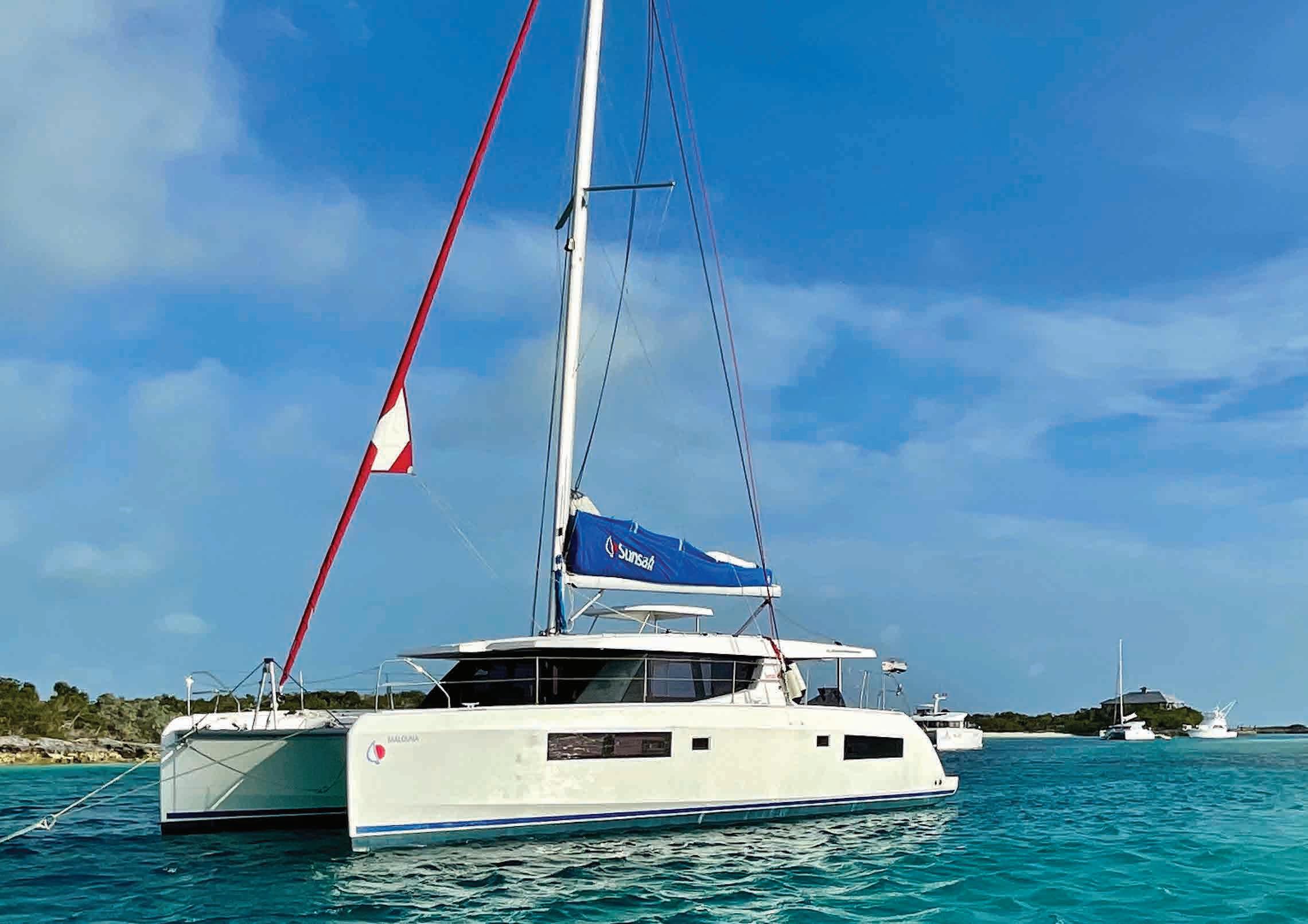 Three things strike you as you cruise the Exumas chain of the Bahamas: the islands cover a lot of territory, the water is really shallow, and you’ll never – ever – find the right words to describe the colors of the sea. I’ve seen beautiful water in different parts of the world – the Cyclades Islands of Greece, the reef over Huahine in French Polynesia and the perfection that is the Tobago Cays in the Grenadines. But never have I seen so many shades of blue and green as I witnessed in the Exumas. As a cruiser, it’s easy to get lost in the Exumas eddy. Boats enter and stay – for years. But with a weeklong charter, you have a packed schedule which is both a blessing and a curse. A curse for obvious reasons – you can’t stay forever. A blessing for the same reason and that means you’ll have to find your way out of the eddy and back to doing something productive with your life. We chartered Malouna, a 45-foot Lagoon catamaran with Sunsail out of Nassau. The chain starts about 20 miles south of Providence Island after you cross Yellow Bank, a bar of nasty looking coral heads. With a short itinerary, the challenge with the Exumas is what to cover on the way down, versus what Tres cosas te sorprenden mientras navegas por las islas de Exuma en las Bahamas: cubren una gran cantidad de territorio, sus aguas son muy poco profundas y jamás encontrarás las palabras adecuadas para describir el color de sus aguas. He visto aguas hermosas en diferentes lugares del mundo: las que rodean las islas Cícladas de Grecia, el arrecife sobre Huahine en la Polinesia Francesa y los Cayos de Tobago en las Granadinas. Pero nunca había visto tantos tonos de azul y verde como presencié en las Exumas. Como crucero, es fácil perderse en el remolino de las Exumas. Los barcos entran y permanecen durante años. Pero con un chárter de sólo una semana, tienes un horario tan lleno que puede ser tanto una bendición como una maldición. Una maldición por razones obvias: no puedes quedarte para siempre. Una bendición por la misma razón y eso significa que tendrás que encontrar la manera de salir del torbellino y volver a hacer algo productivo con tu vida. Charteamos Malouna, un catamarán Lagoon de cuarenta y cinco pies con Sunsail desde Nassau. La cadena comienza a unas veinte millas al sur de la isla de Providence después de cruzar Yellow Bank, una barra de cabezas de coral de aspecto