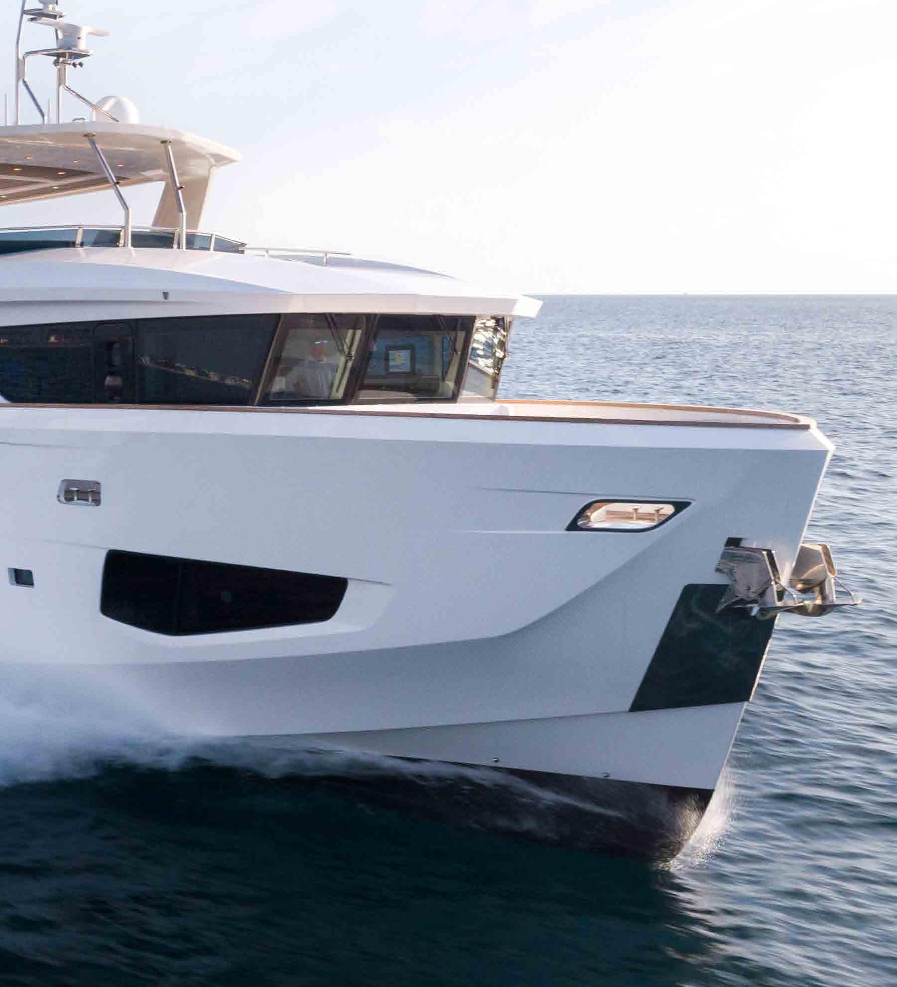 With22 units sold to date, the Numarine 26XP Fast is a large-volume, expedition-style motor yacht that can be customized with a 4- or 5-cabin layout. Available in a displacement or planing configuration, the latter is equipped with more powerful engines and is aimed squarely at the US market.