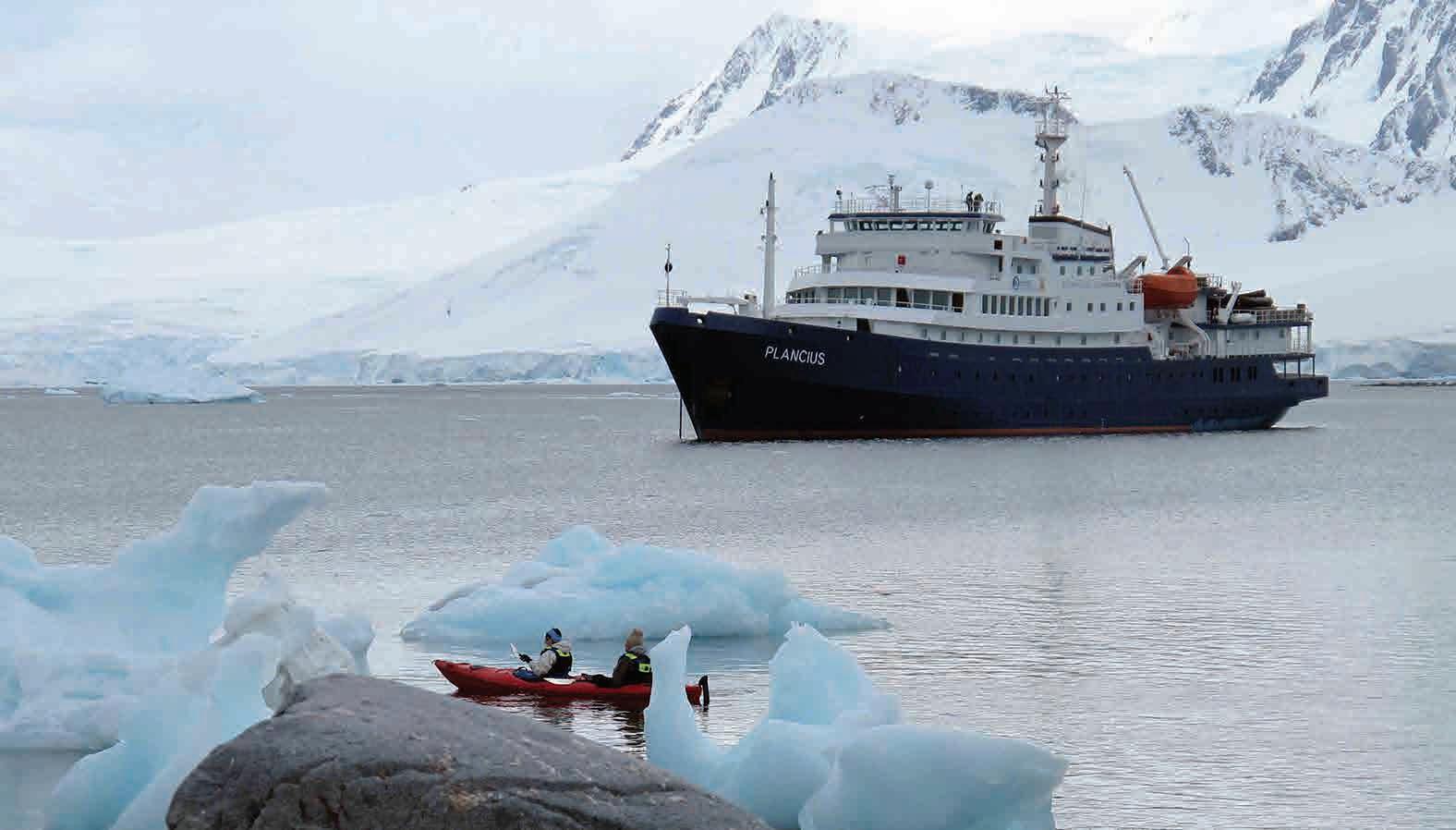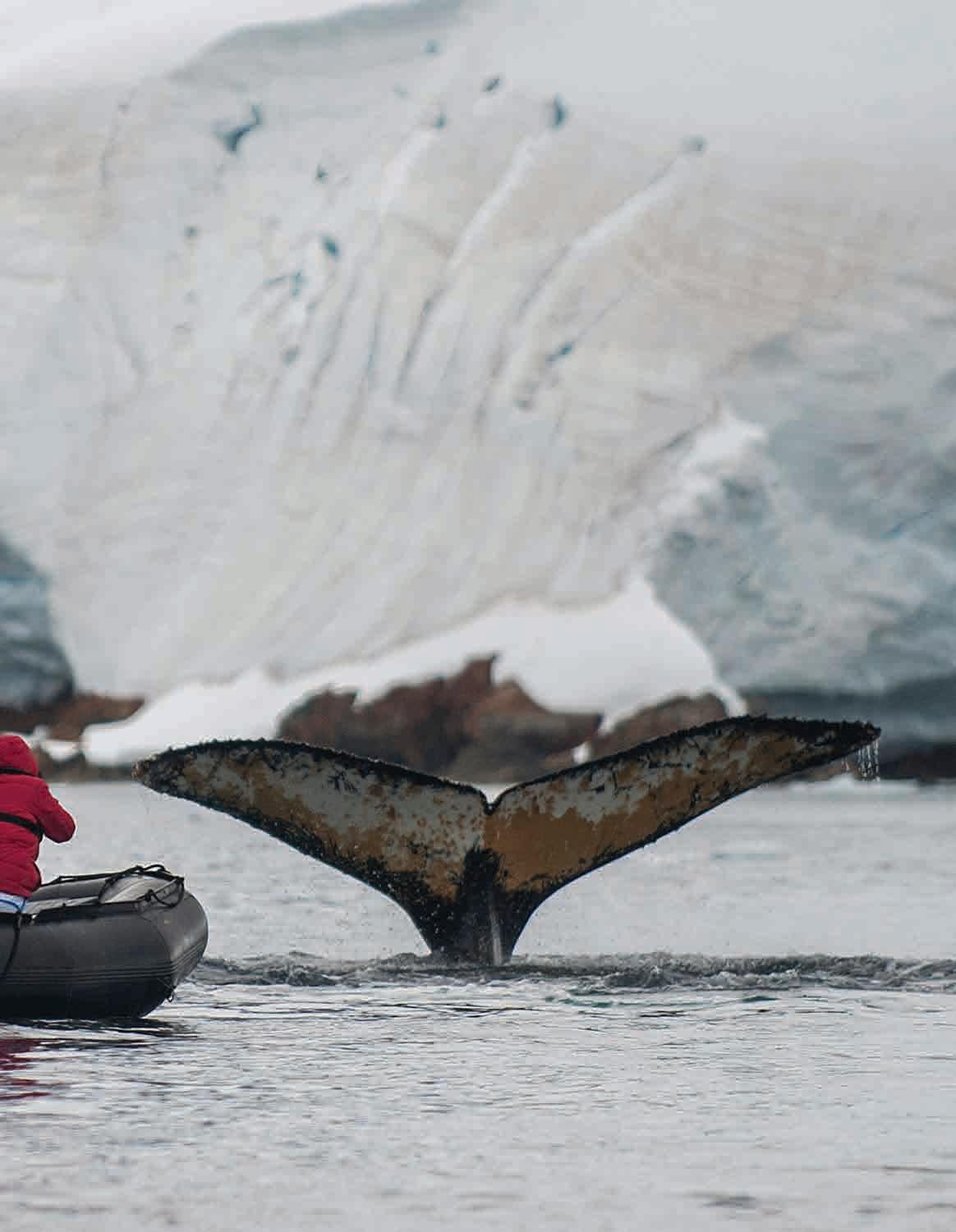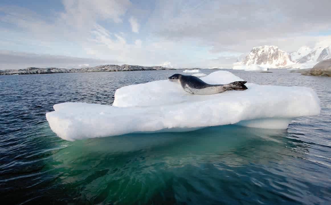 Las principales actividades durante su estadía en la Antárti- for panoramic views or hike to see remnants of bygone eras. Depending on when you travel, expect to get up close to the dazzling beauty of grounded icebergs as well as leopard seals lazing on ice floes or even whale sightings. On many expedition cruises, you can choose from various adventure activities to make the most of your time in Antarctica, like polar diving cruises. As if visiting Antarctica is not otherworldly enough, there is a whole other world to explore under the surface of the seas. Antarctic diving reveals a world of ice, where glaciers, gigantic icebergs, and a unique marine life blend will greet you!