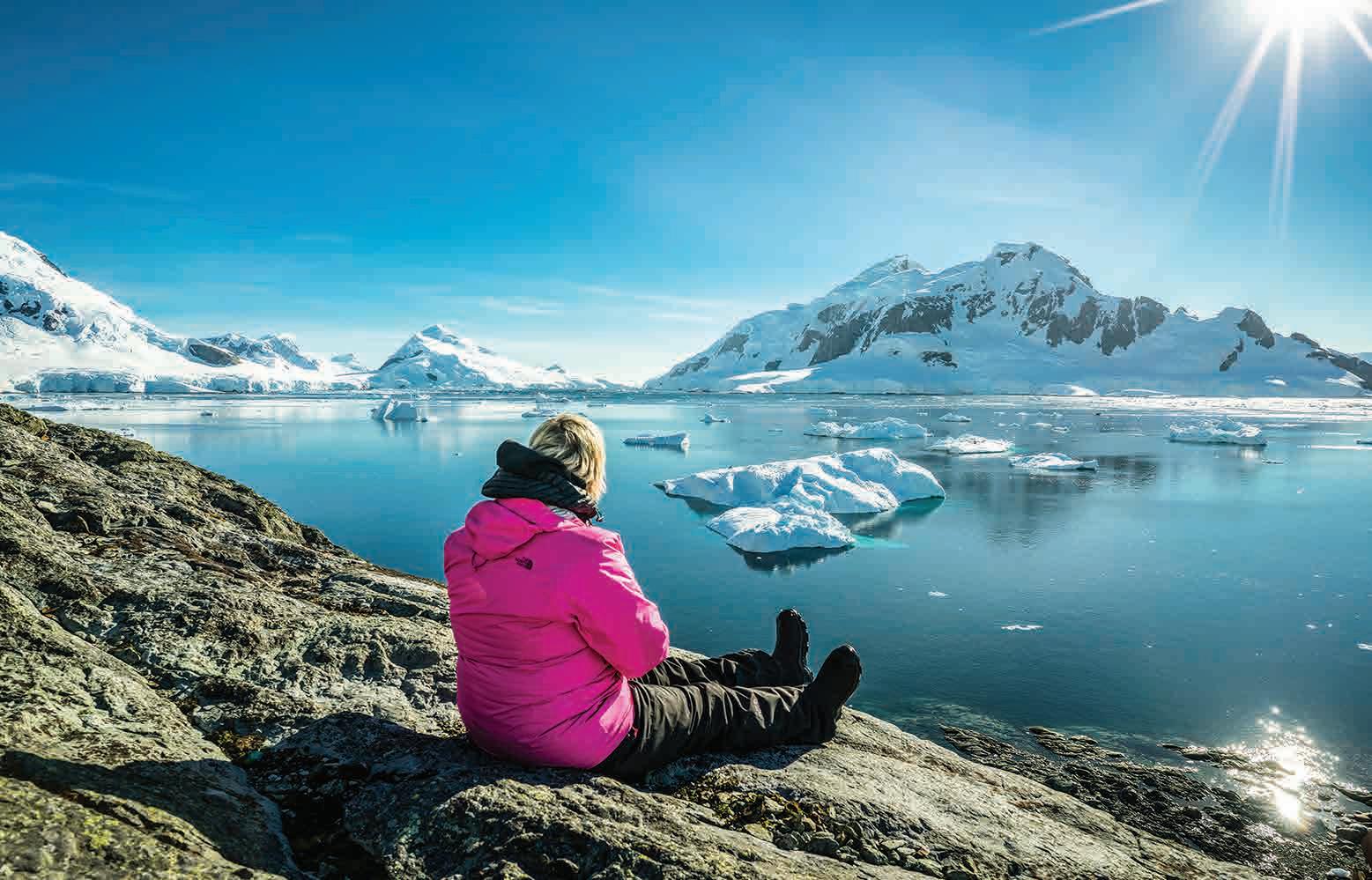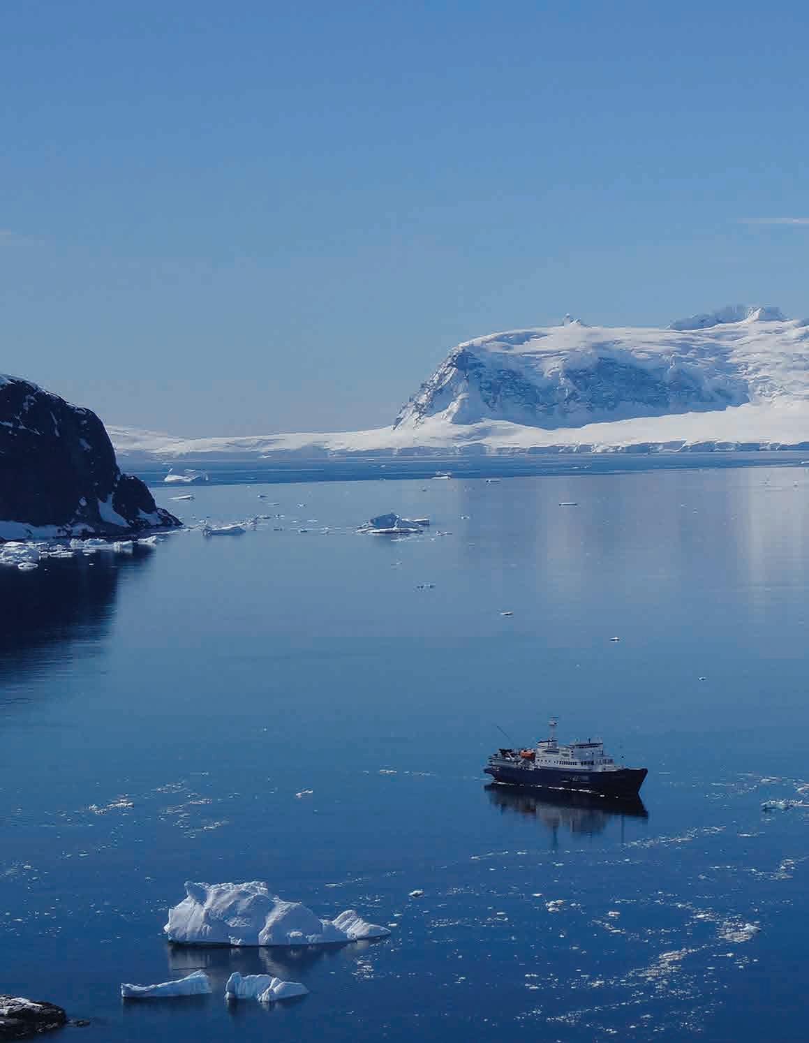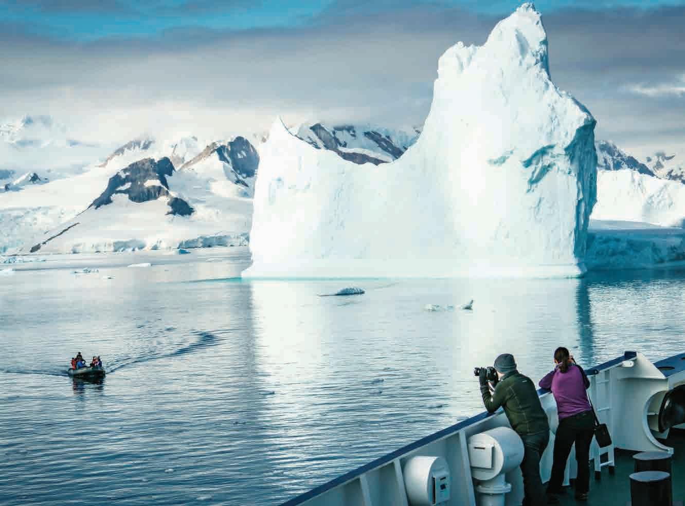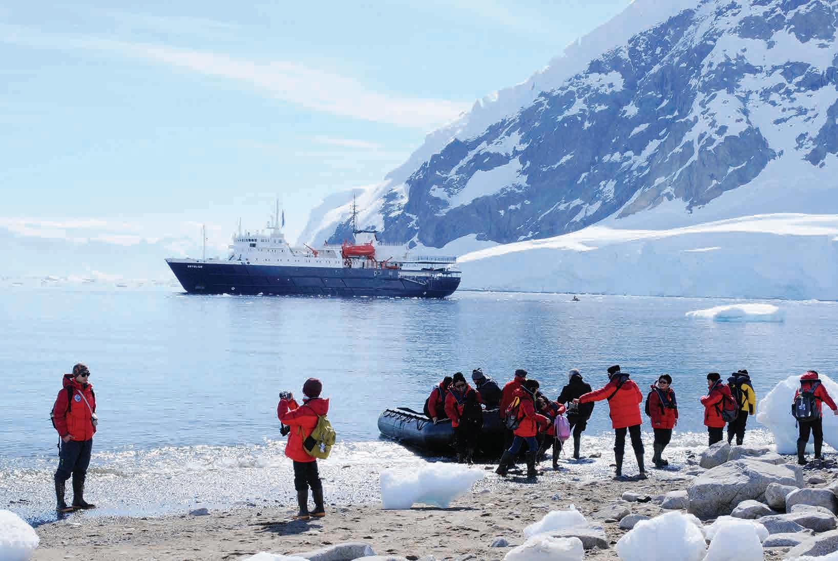 Las excursiones de esquí ofrecen a los entusiastas aventureros la oportunidad de subirse a algunas de las pistas más increí- expeditions. For whichever adventure you choose, you would need to be in reasonably good shape and healthy. Hikes usually last between 2 and 6 hours walking where there are no paths, so you will travel over fairly rugged terrain and take on some hills. Usually with cruises, 1 to 3 types of walks are offered per landing ranging from a casual stroll to a challenging hike. bles del mundo. Los esquiadores experimentados pueden disfrutar de excursiones de un día atravesando picos nevados remotos y luego descender a bahías vírgenes llenas de témpanos flotantes, colonias de pingüinos o incluso ballenas saltando. Otra gran manera de explorar la Antártida es tomar el camino hacia el interior desde las costas polares haciendo expediciones de senderismo. Para cualquier aventura que elija, deberá estar en forma. Las caminatas suelen durar entre 2 y 6 horas caminando donde no hay senderos, por lo que viajará por un terreno bastante accidentado y subirá algunas colinas. En los cruceros, se ofrecen de 1 a 3 tipos de caminatas por desembarco que van desde un paseo informal hasta una caminata más desafiante. No todos los cruceros ofrecen estas actividades, así que tenga cuidado al elegir las salidas del crucero/fechas correctas y reserve con anticipación porque la disponibilidad es muy limitada. Algunos cruceros incluyen estas actividades en el precio, y puede añadirlas con un coste extra para otros. Viajar a la Antártida es un reto que requiere un espíritu aventurero, ¡pero el esfuerzo siempre vale la pena! Es un viaje extraordinario que cambiará su forma de ver el mundo.